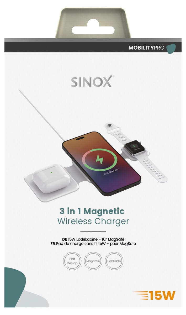 • Sinox Pro 3-in-1 15 W – kokoontaittuva langaton MagSafe-laturi.