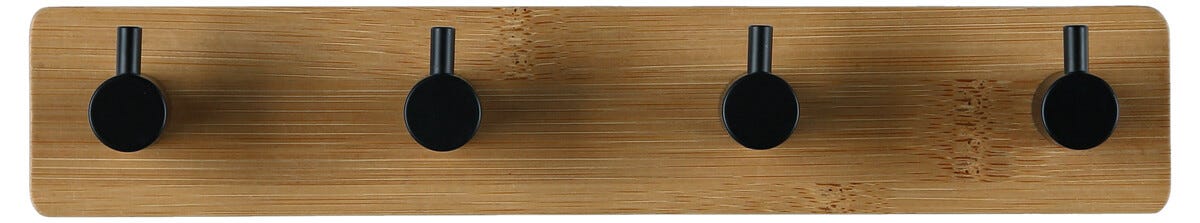 Itsekiinnittyvä koukkulista, 4 koukkua, bambu ja musta metalli