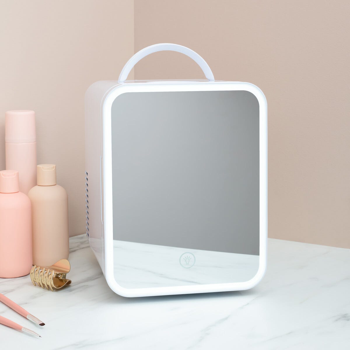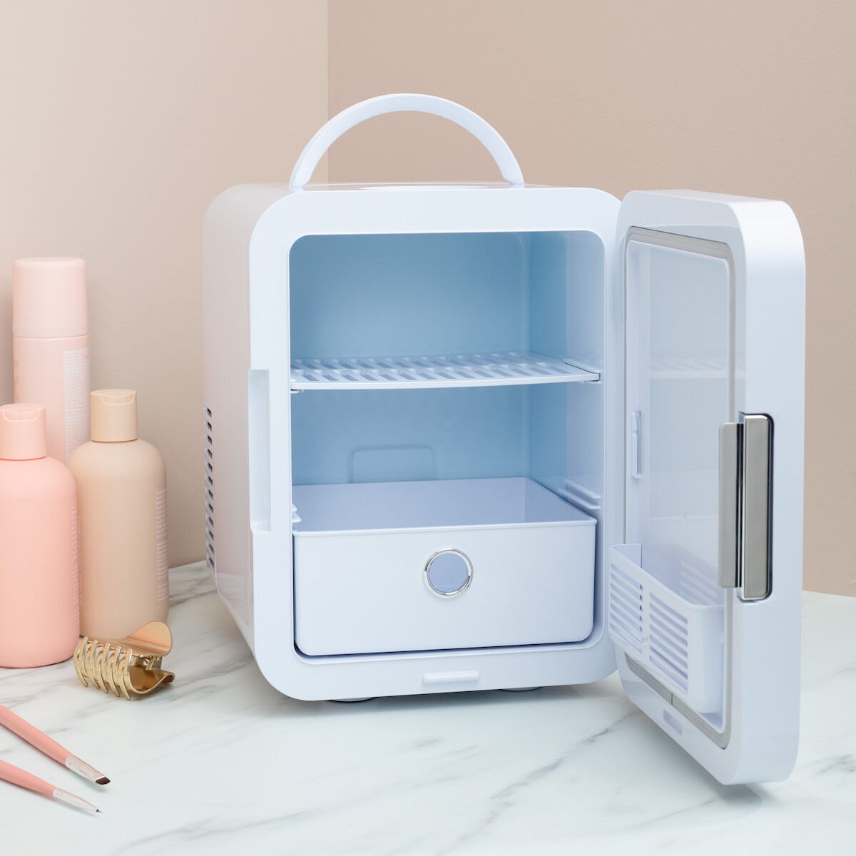 • Minijääkaappi, jossa meikit ja ihonhoitotuotteet säilyvät optimaalisessa lämpötilassa.