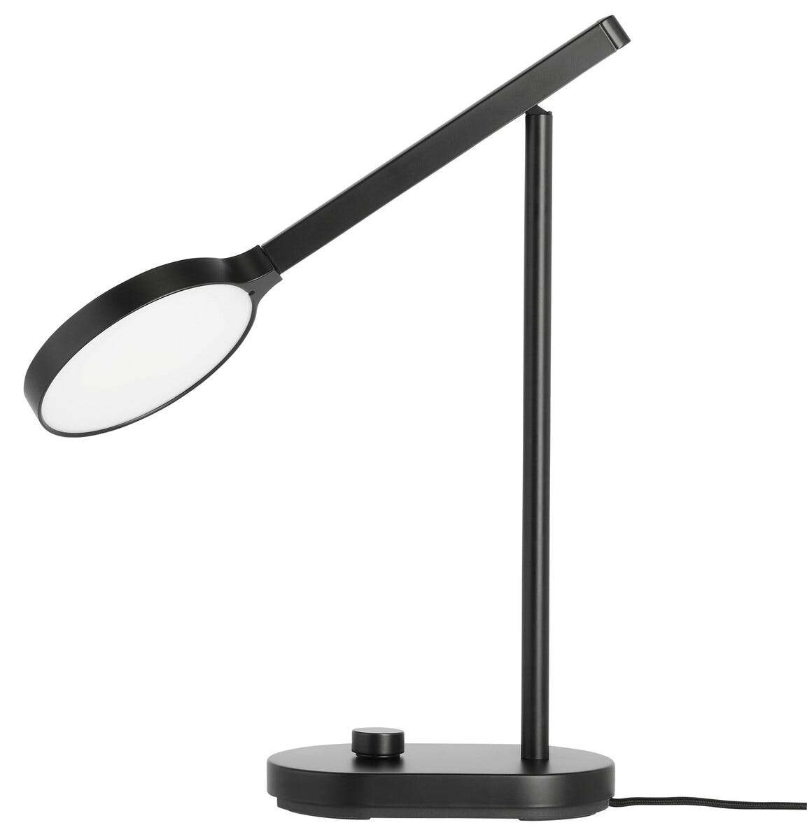 • Himmennettävä musta pöytävalaisin, jossa kangaspäällystetty johto.