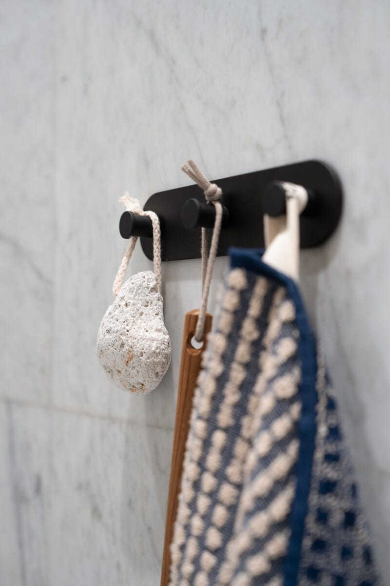 • Moneen paikkaan sopiva kylpyhuoneen koukku – kiinnitä teipillä kaakeliin tai klinkkeriin.