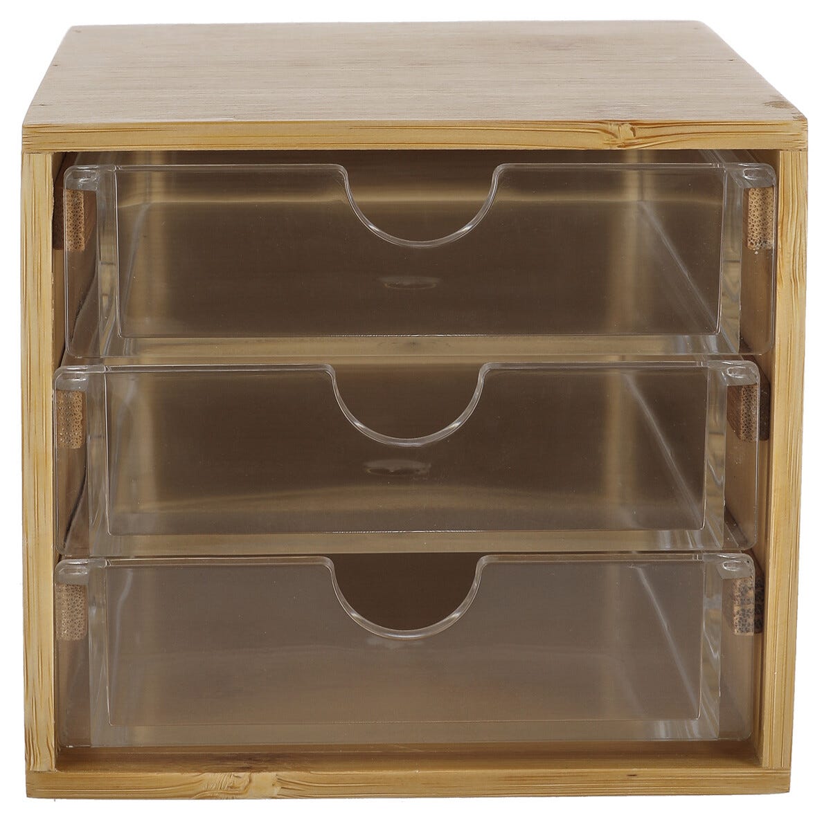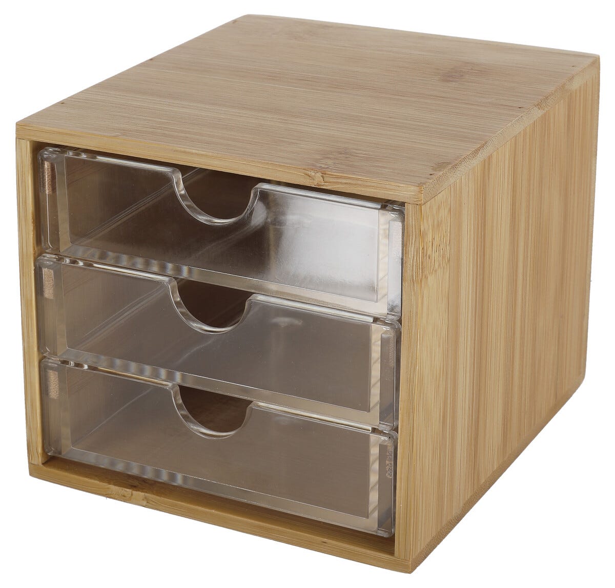 • Meikkiteline bambua – kolme pientä vetolaatikkoa.