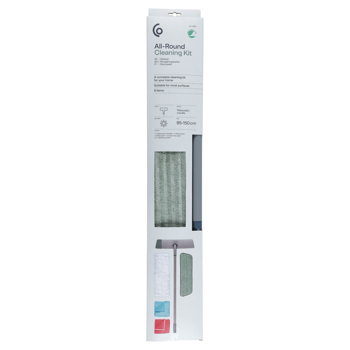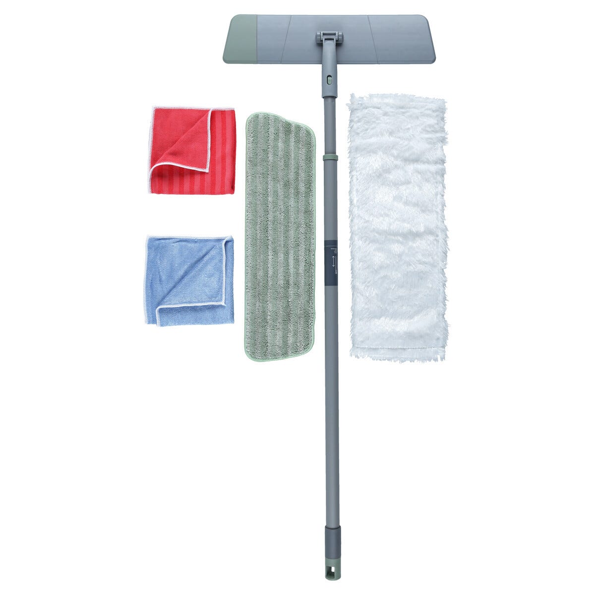 • Teleskooppivarsi, kosteamoppi, pölymoppi ja kaksi puhdistusliinaa.