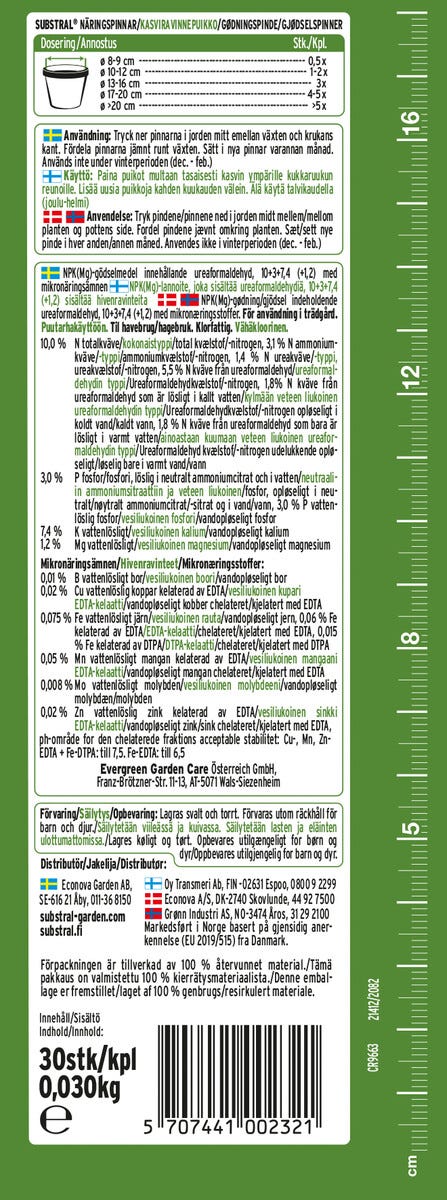 • Substral näringspinnar – främjar tillväxten och motverkar gula blad.