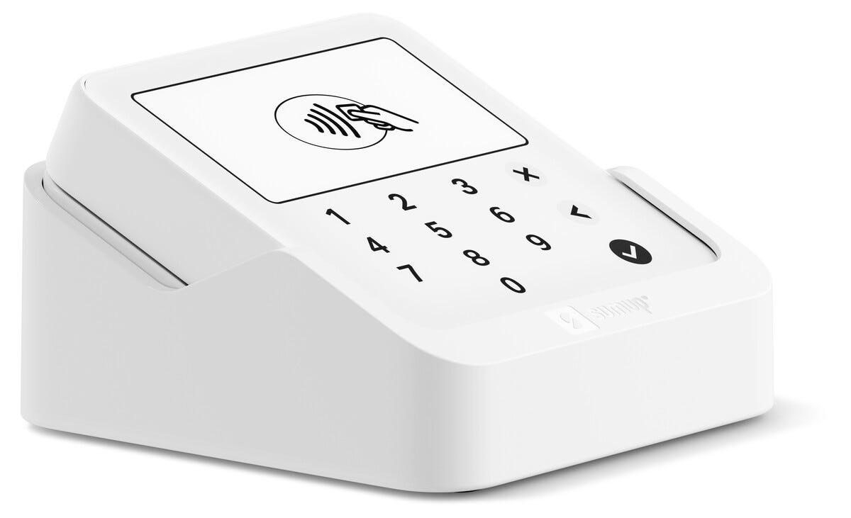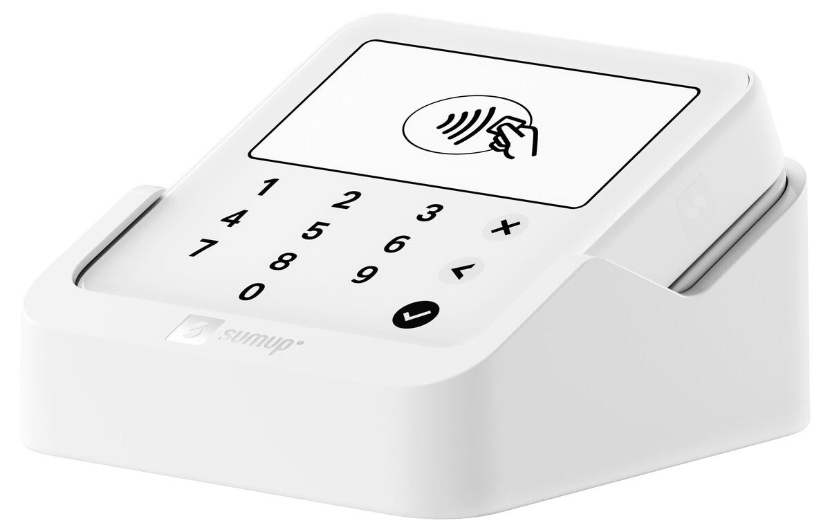 • SumUp Solo Lite -kortinlukija – mukana latausasema, joka toimii lisäksi telineenä.