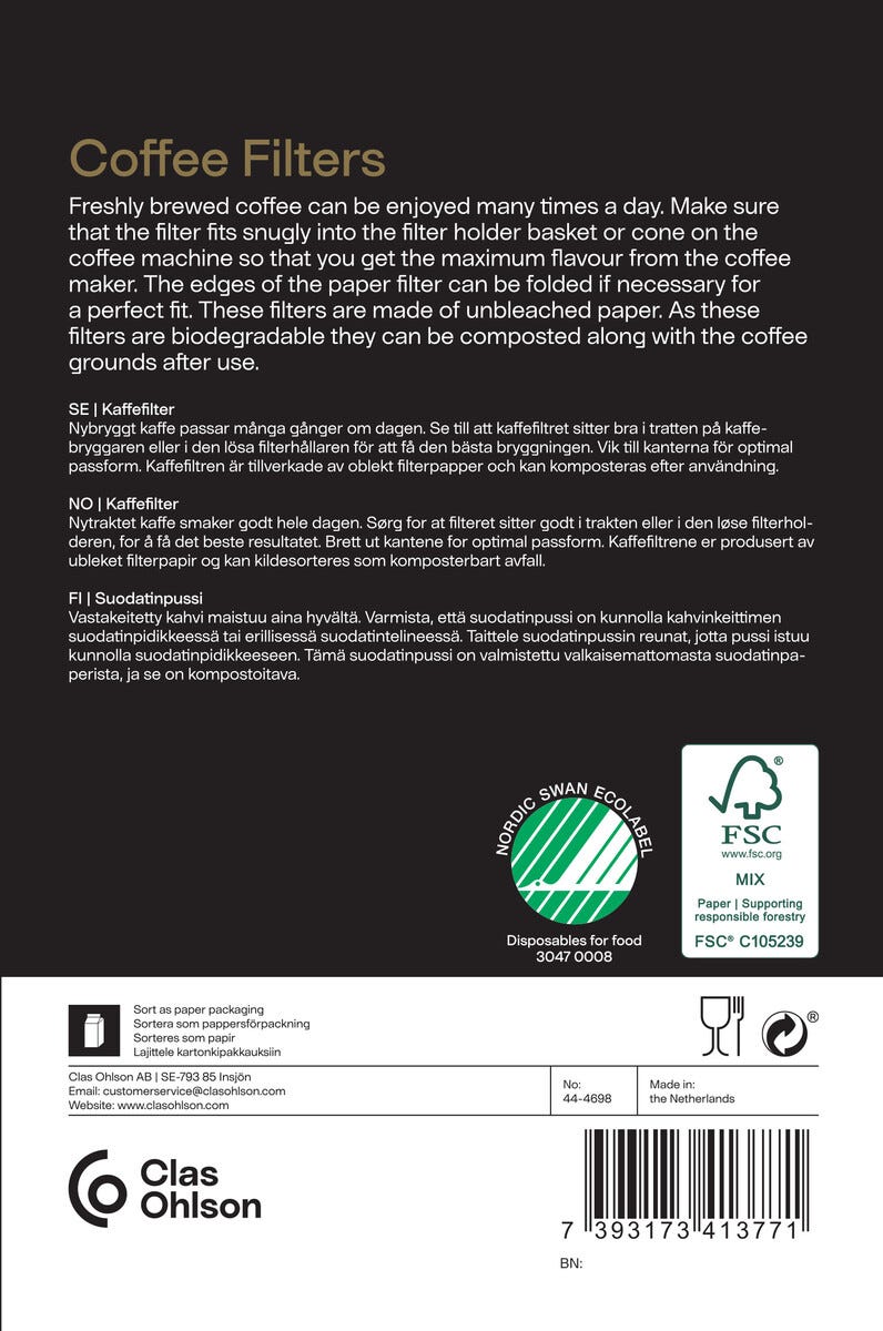 • 1x4-koko sopii monenlaisiin kahvinkeittimiin.