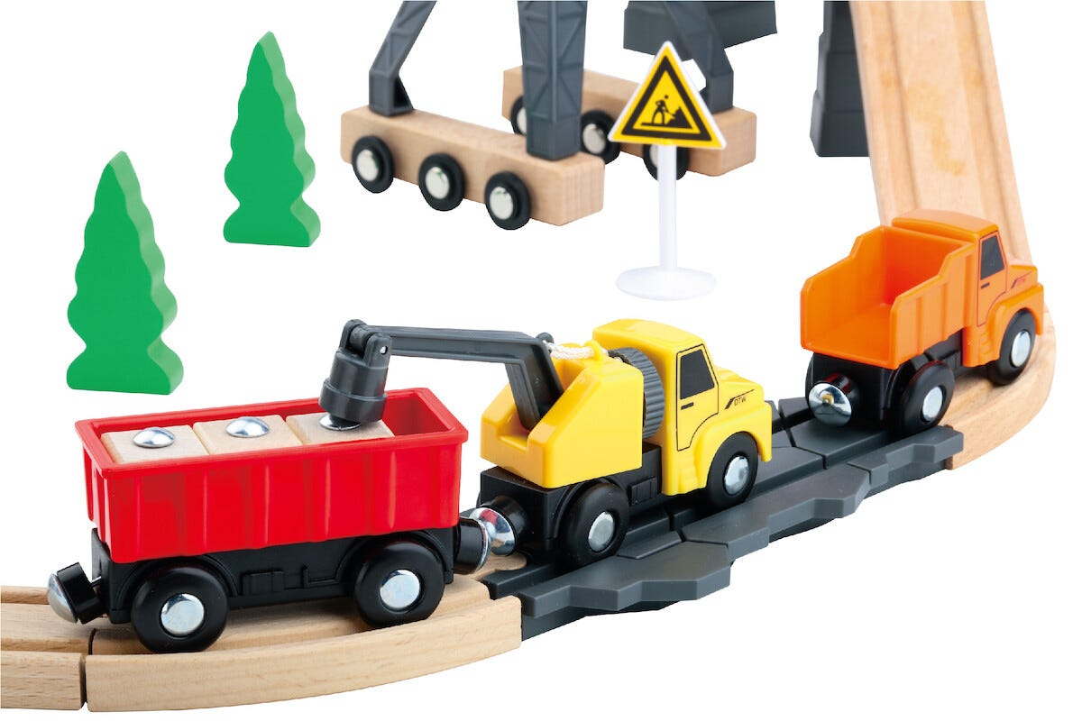 Tågbana i trä byggarbetsplats, 35 delar, från 3 år