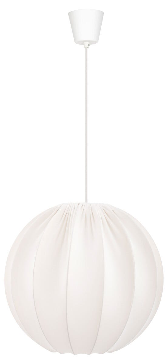 • Pyöreä kattovalaisin, jossa valkoinen kangasvarjostin.