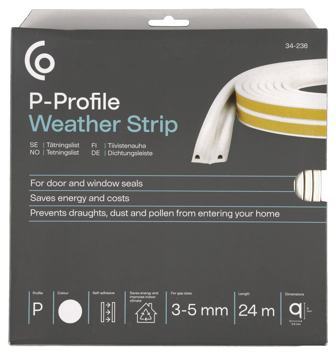 • Helppokäyttöinen tiivistenauha – P-profiili ja tarrakiinnitys.
