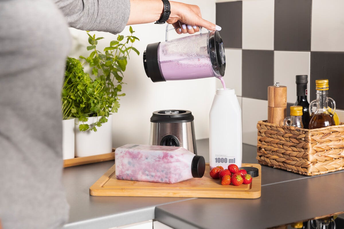 • Tålig blender i plast – behållare och lock tål maskindisk i övre korgen.