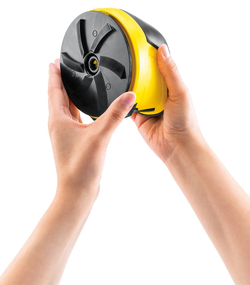 Pyörivä levy 6 terällä Kärcher EDI 4 -jääraappaan. Levyn vaihto käy helposti ilman työkaluja.