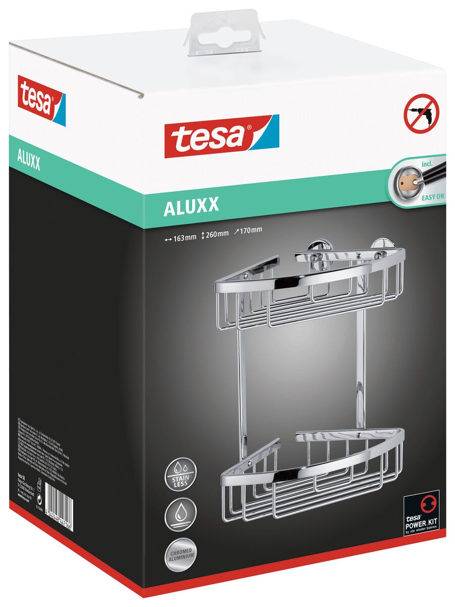 • Tesa Aluxx ruostumaton suihkuhylly – tyylikäs muotoilu ja kiiltävä, kromattu alumiini.