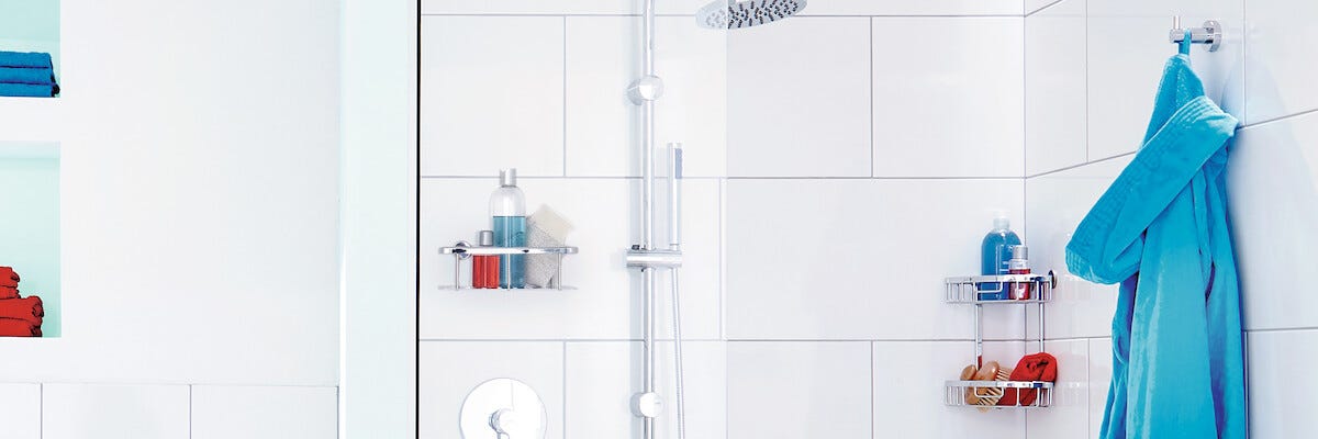 • Itsekiinnittyvä suihkukori – vahva vedenkestävä liima, joka on myös helppo ottaa pois.