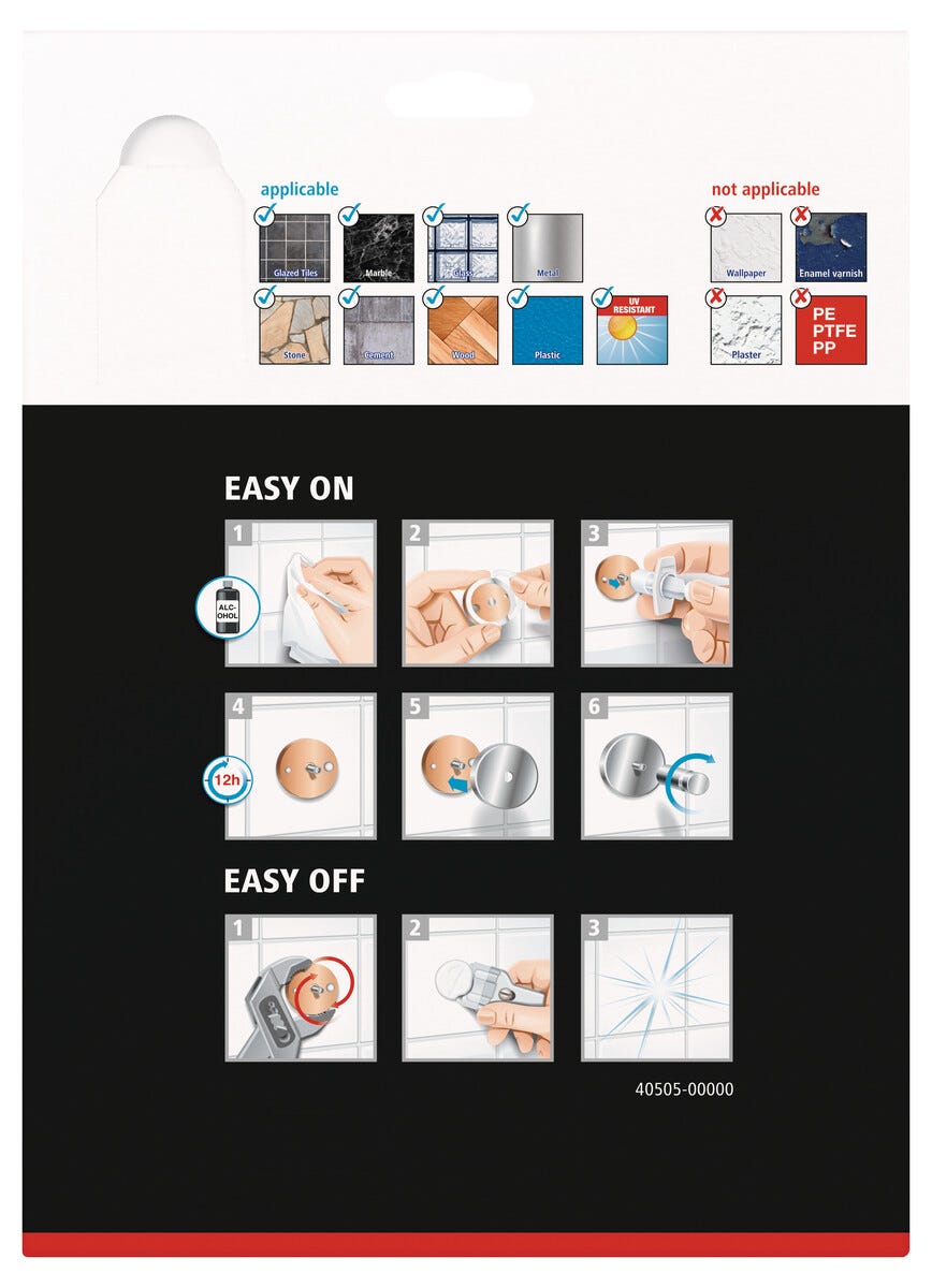 • Itsekiinnittyvä suihkukori – vahva vedenkestävä liima, joka on myös helppo ottaa pois.