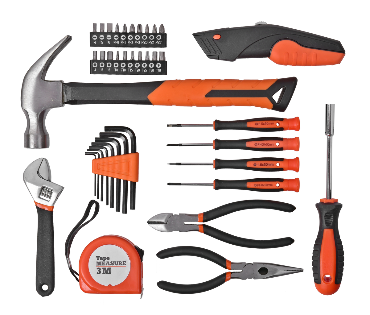 • Monipuoliset työkalut kodin askareisiin – naulaa, ruuvaa, mittaa ja leikkaa.
