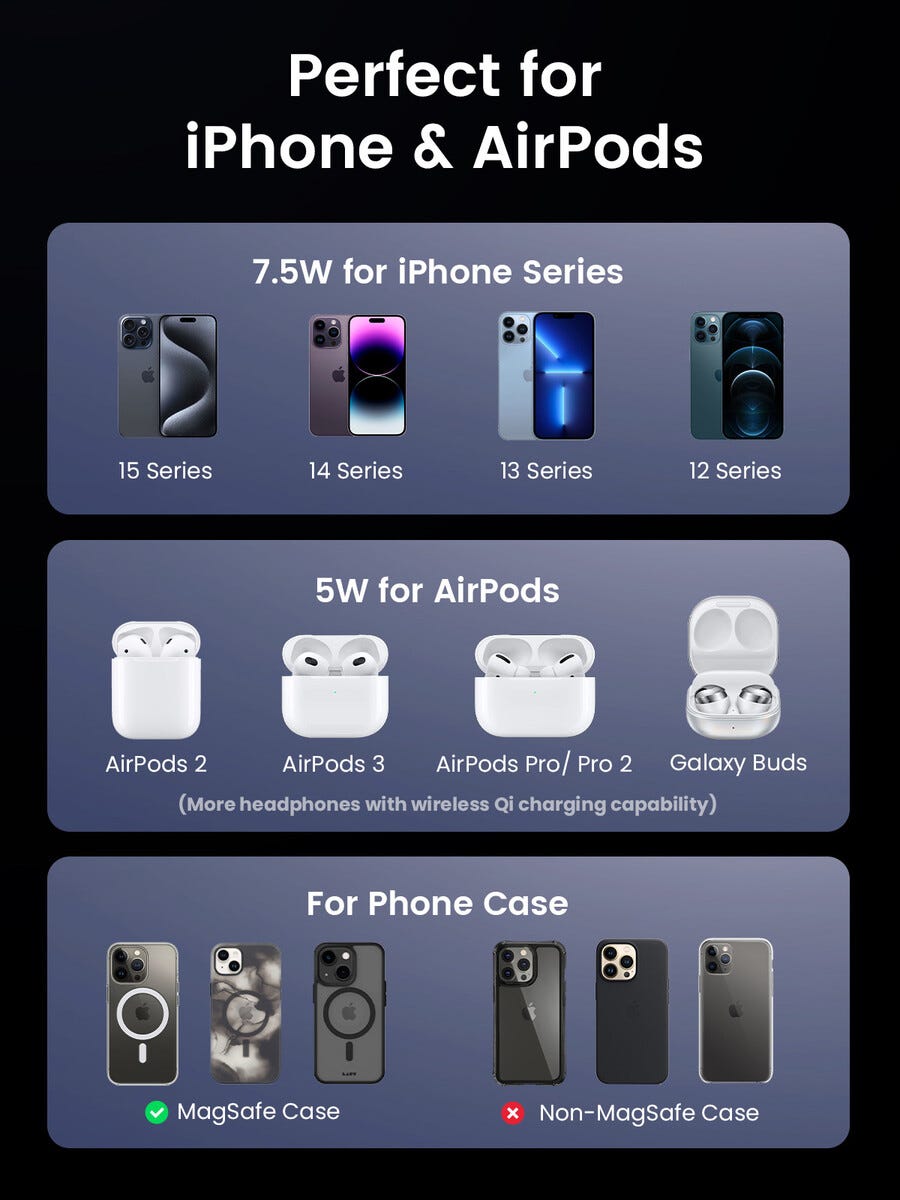 Ugreen 2-in-1 Qi2 Langaton laturi taitettava, 15 W