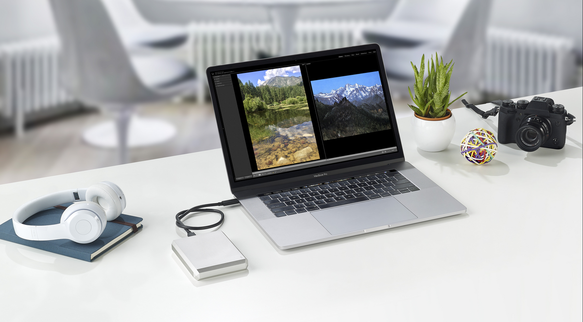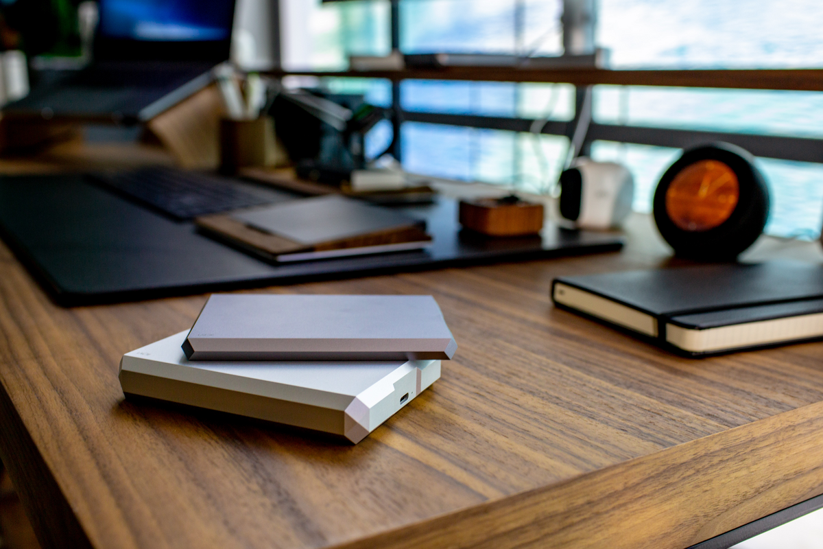 Tyylikäs kannettava LaCie-kovalevy, jossa ylellinen alumiinikotelo. 2,5”:n kovalevy, jossa on USB 3.0 C erittäin nopeaan tiedonsiirtoon.