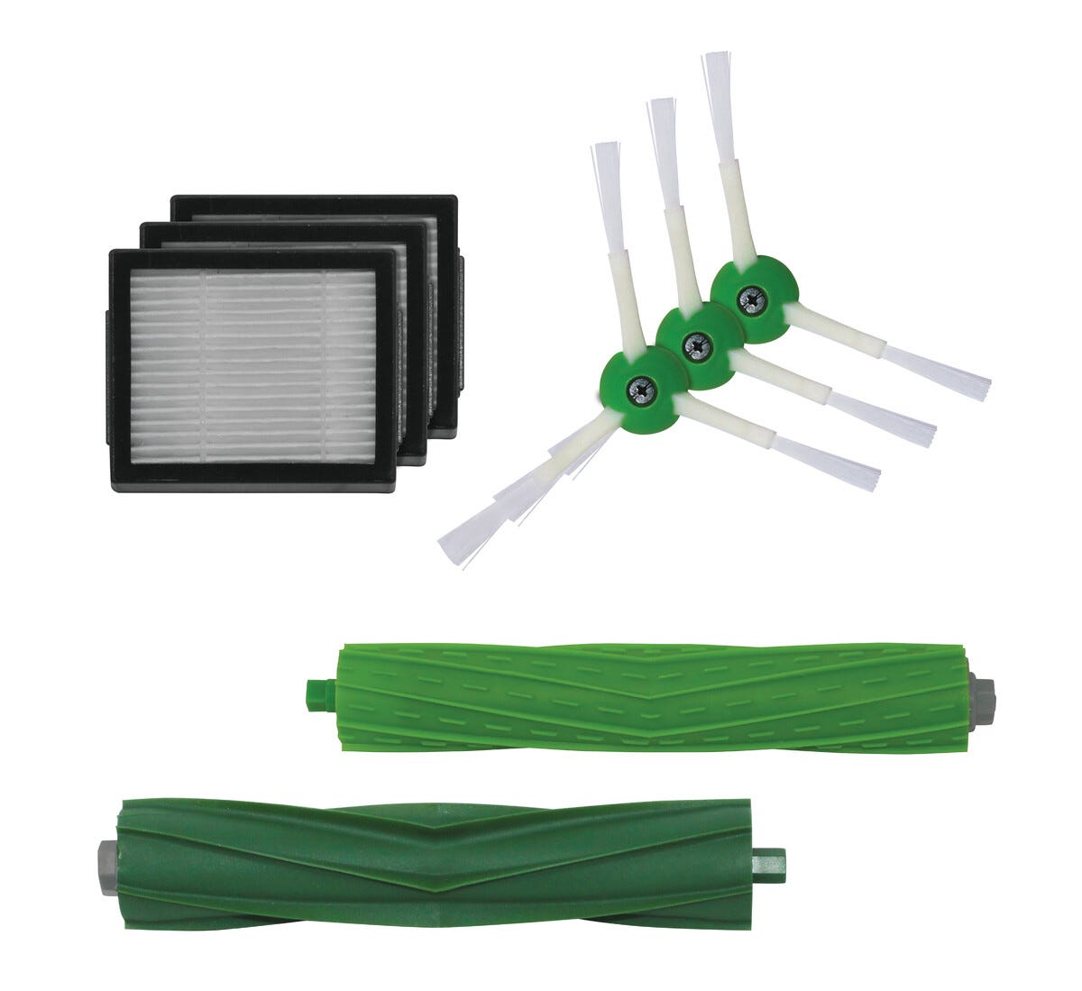 Tillbehörssatsen innehåller 3 filter, 3 sidoborstar och 2 gummiborstar.