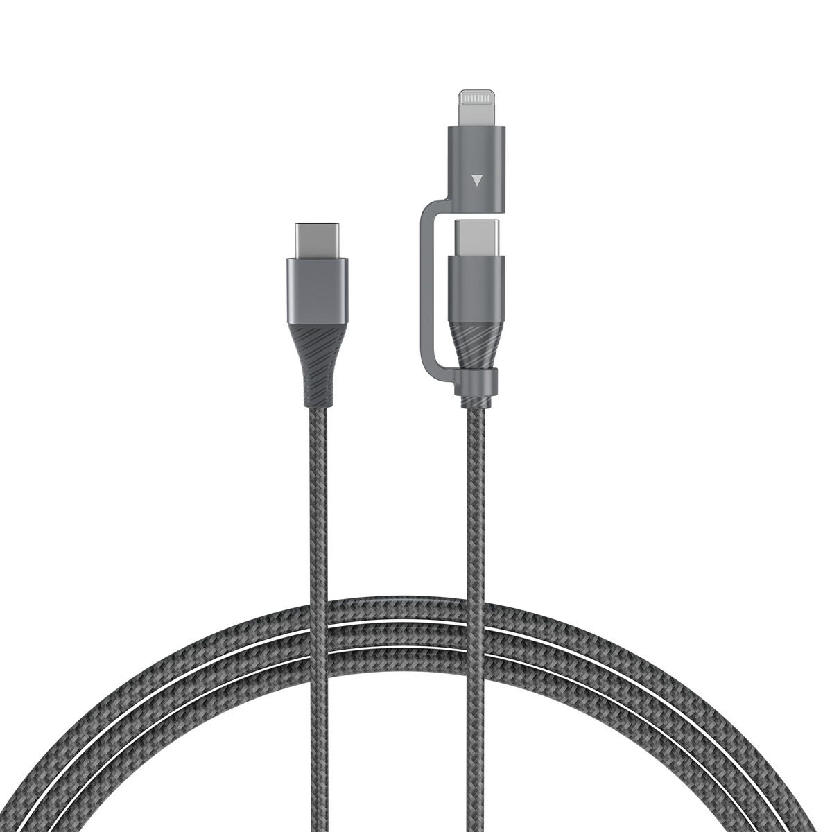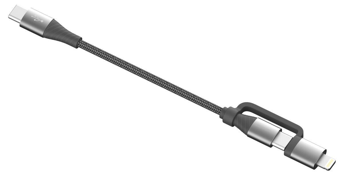 • 2-in-1-kaapeli – USB-C - Lightning ja USB-C.