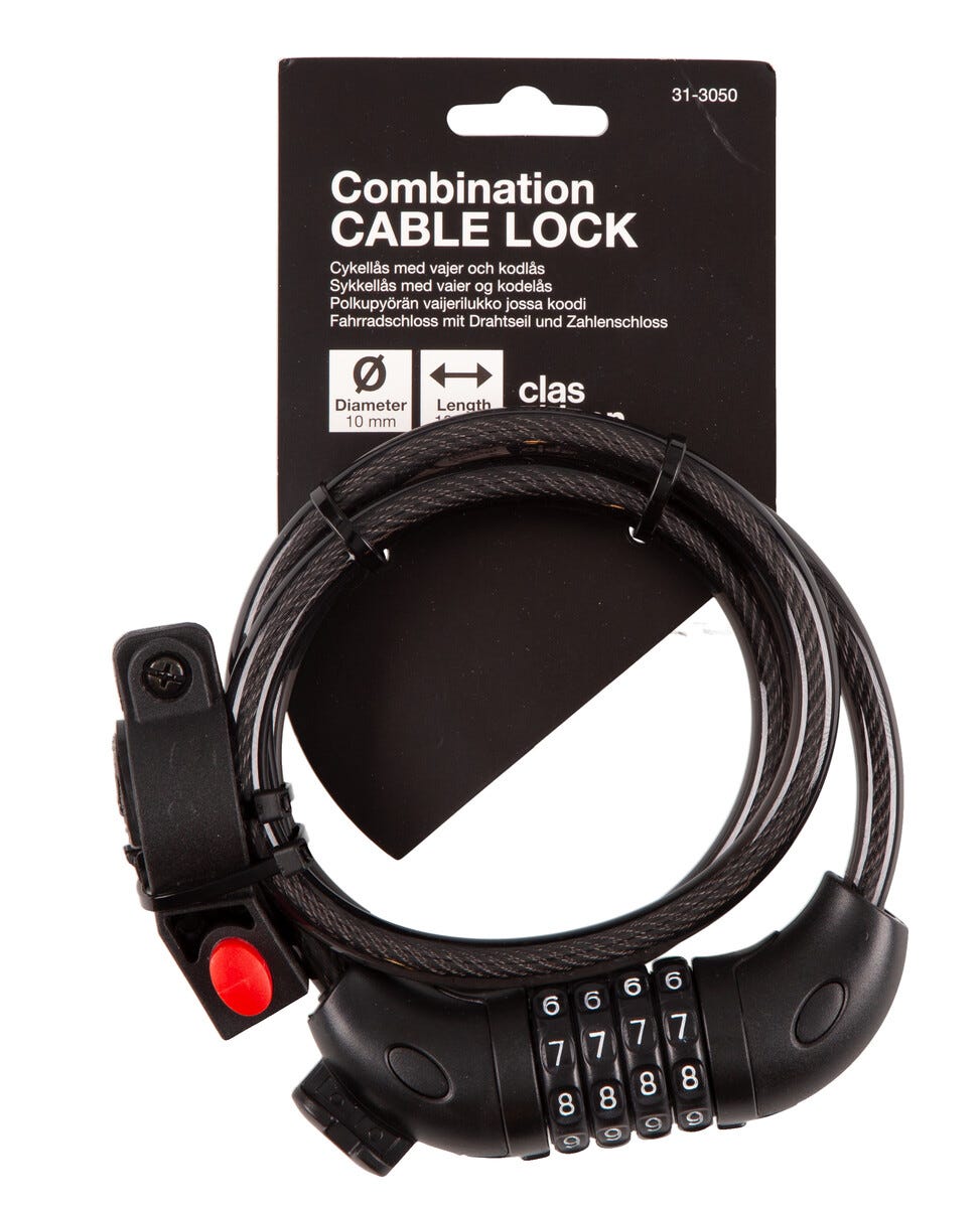 • Vaijerin halkaisija 10 mm, pituus 1 metri. Joustava vaijeri tarjoaa monia lukitusmahdollisuuksia.