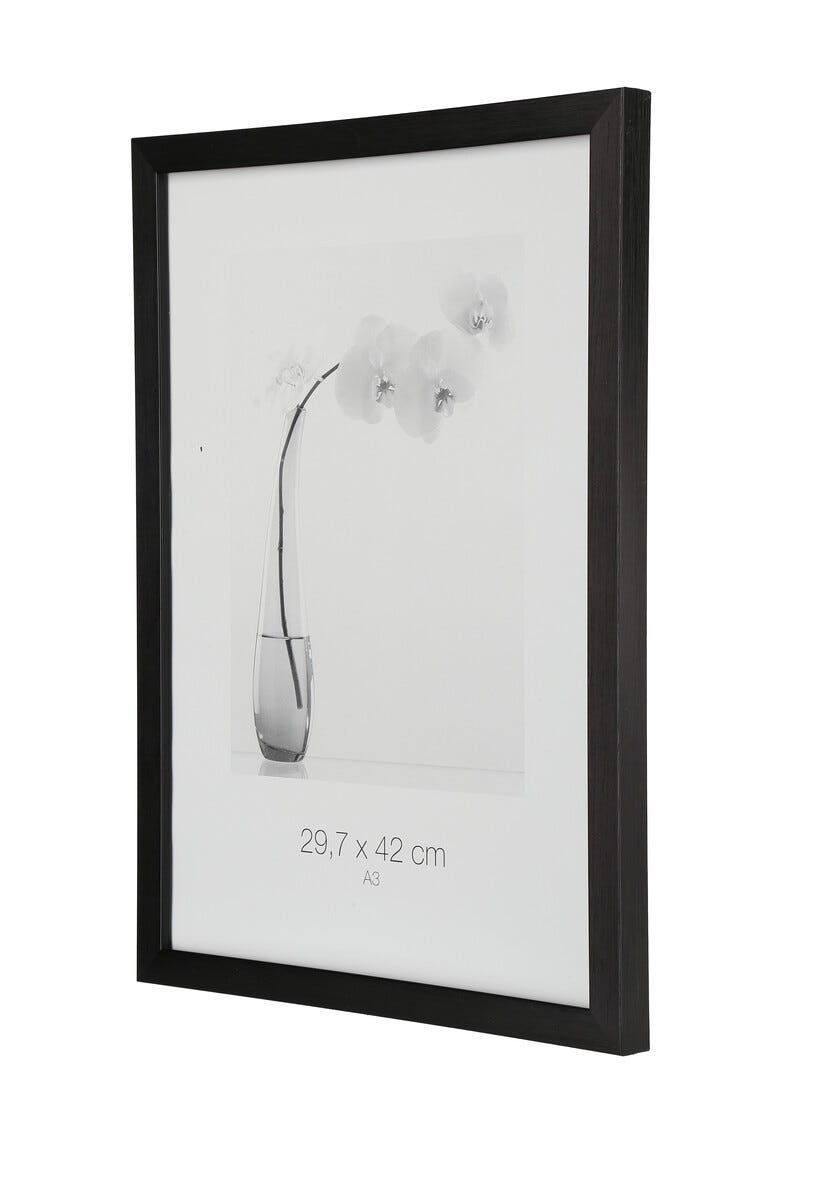 • Svart ram av återvunnen plast med glas (70 x 100 cm med plexiglas).