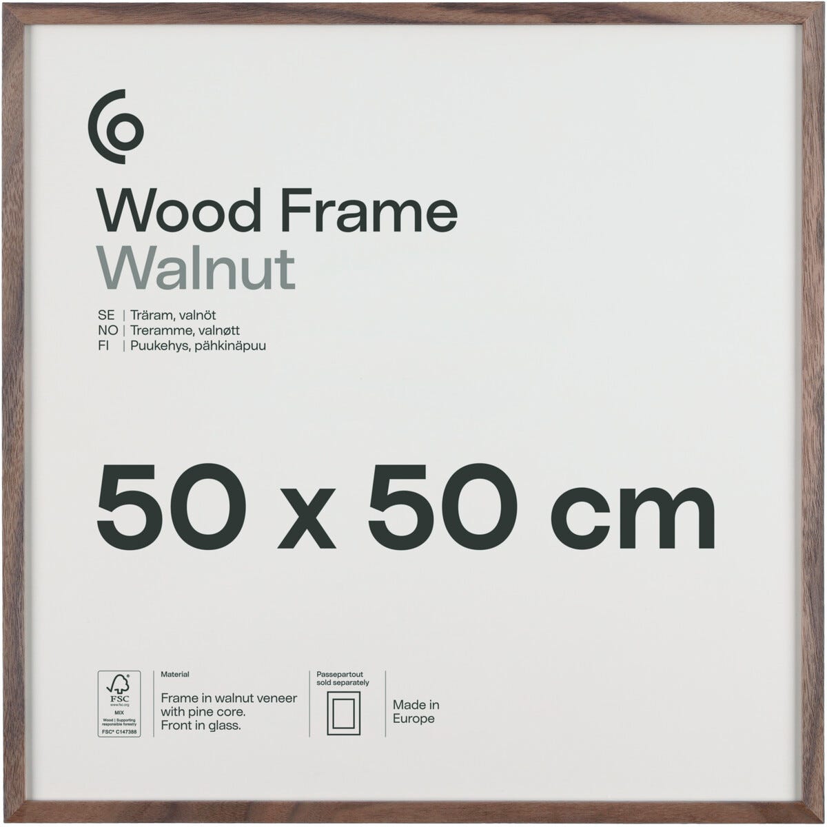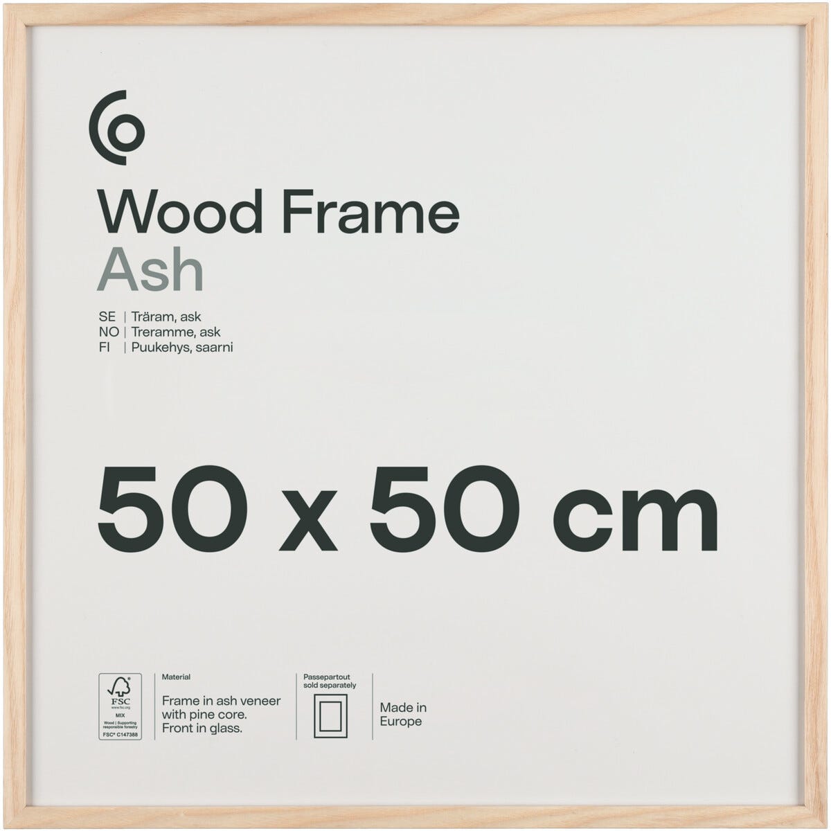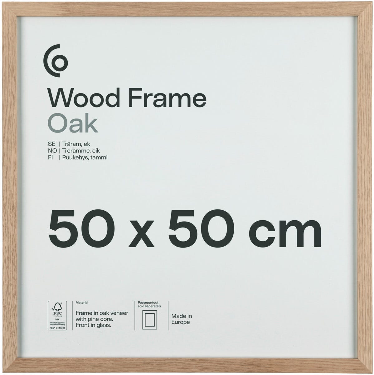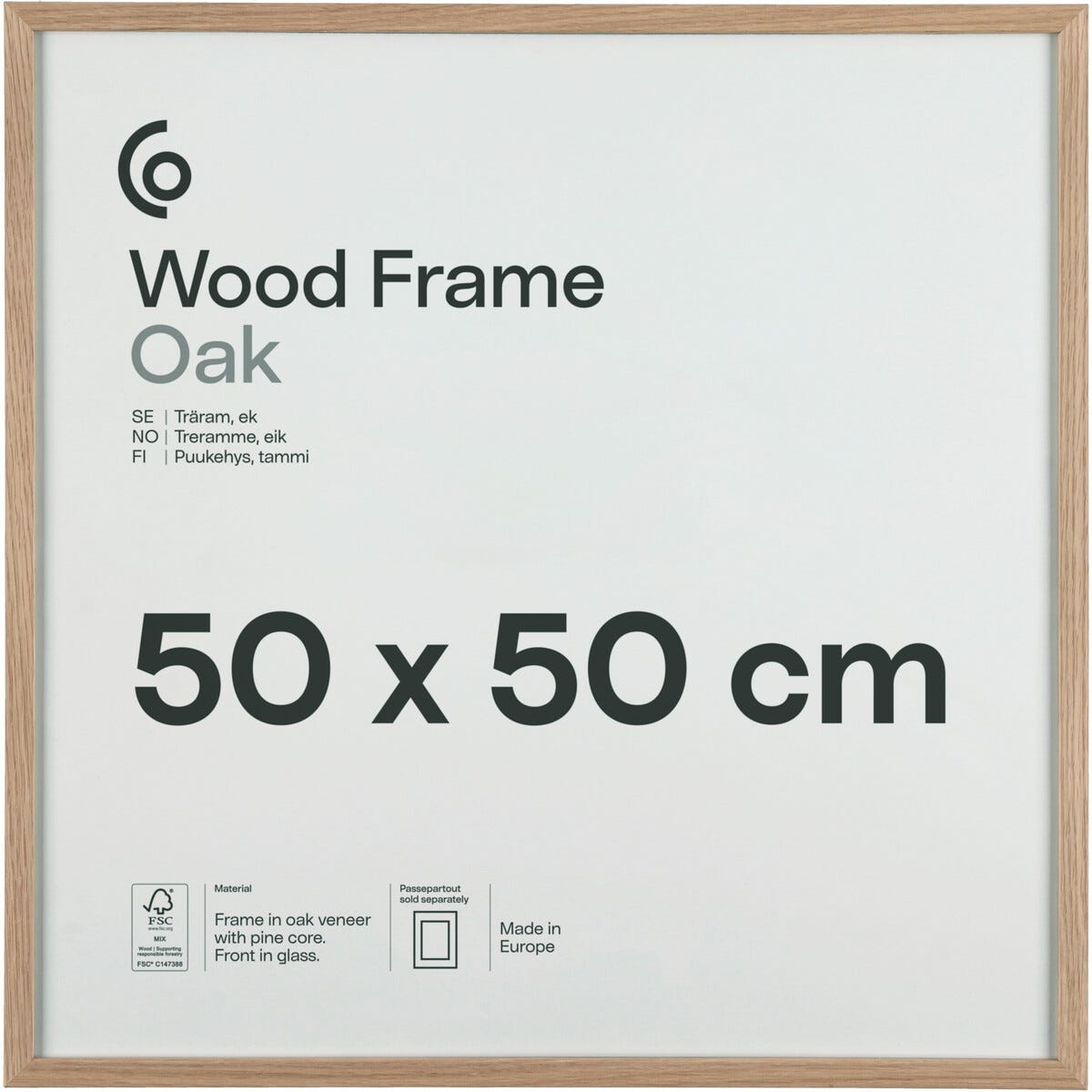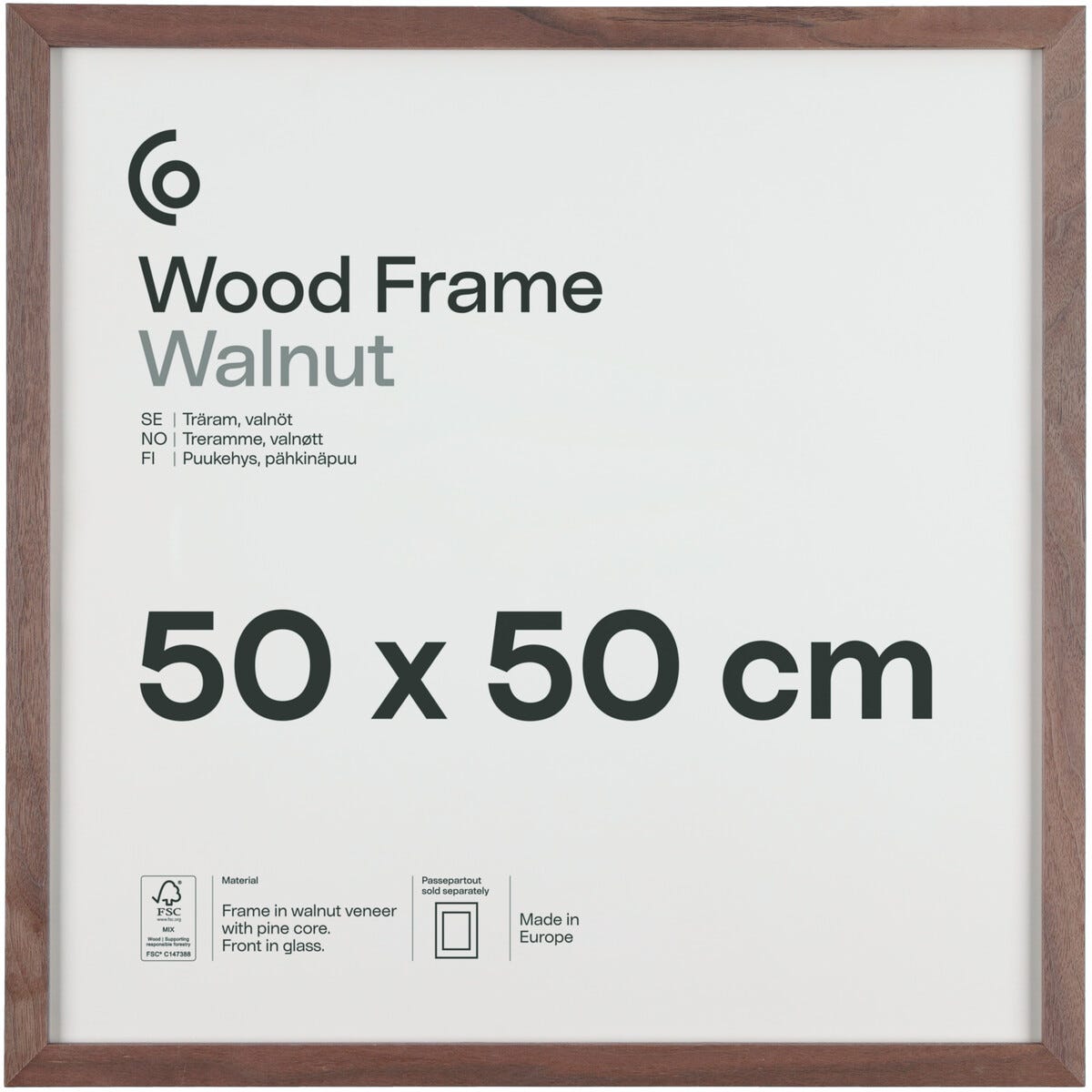 Valokuvakehys neliö puuta FSC 50x50 cm