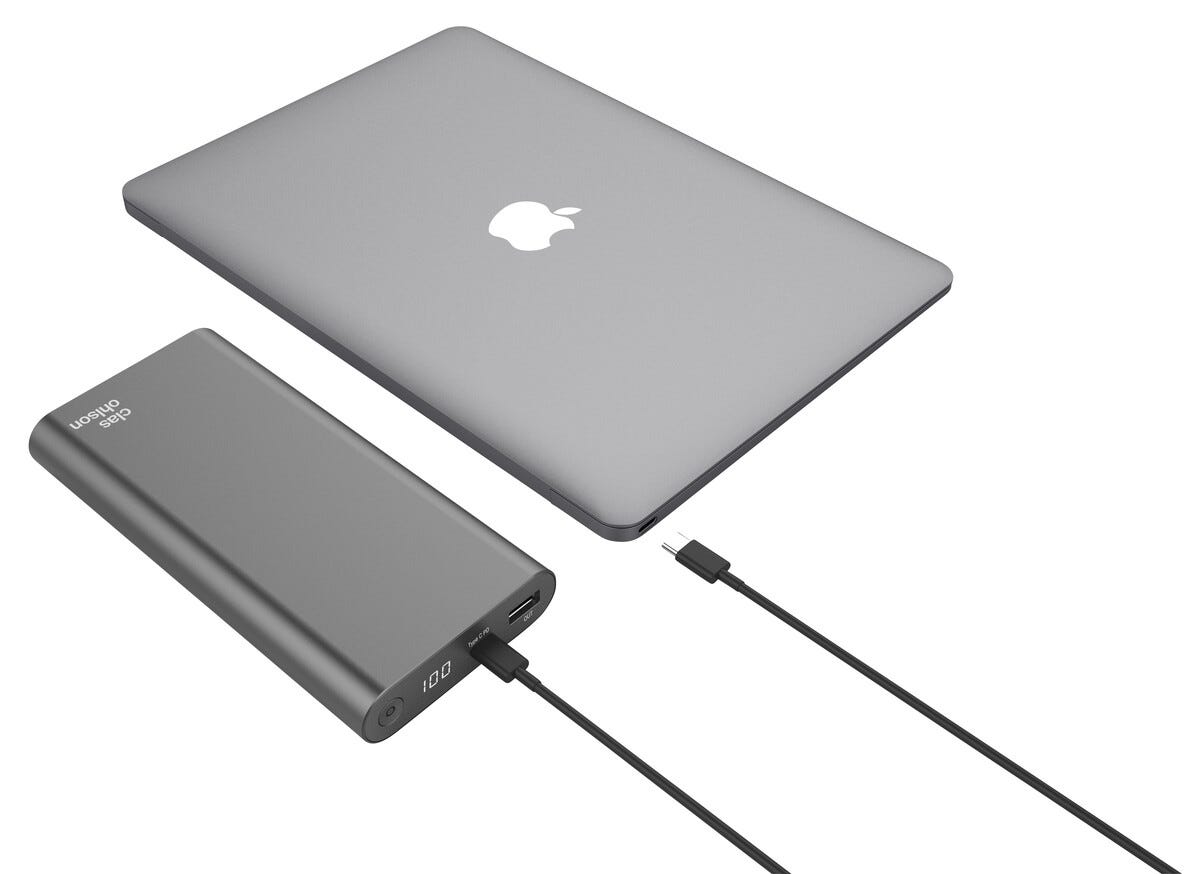 • Tehokas varavirtalähde, jossa USB-C- ja USB-A-liitännät.