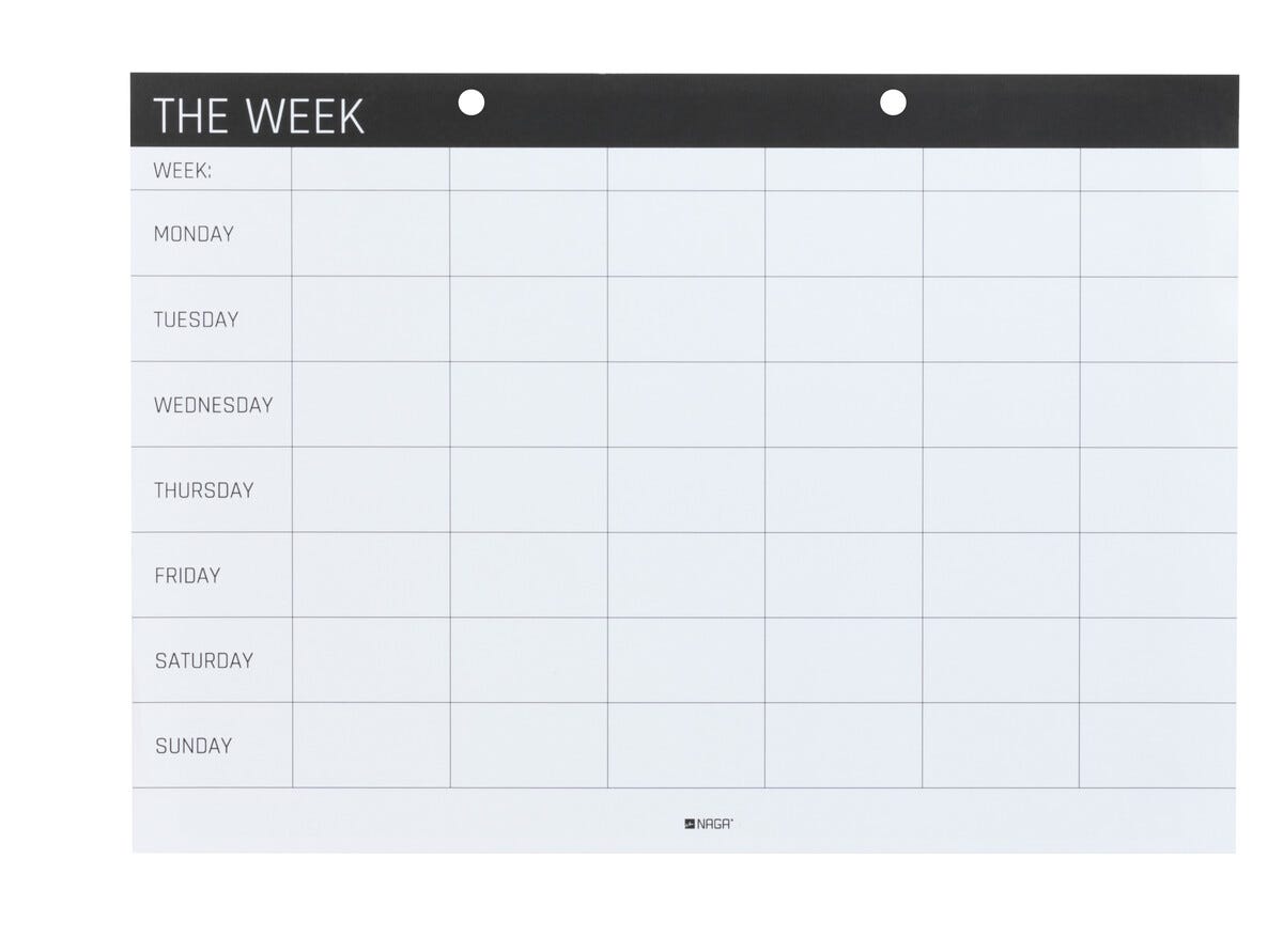 • Svart hållare i metall och ett nytt blad för varje vecka.