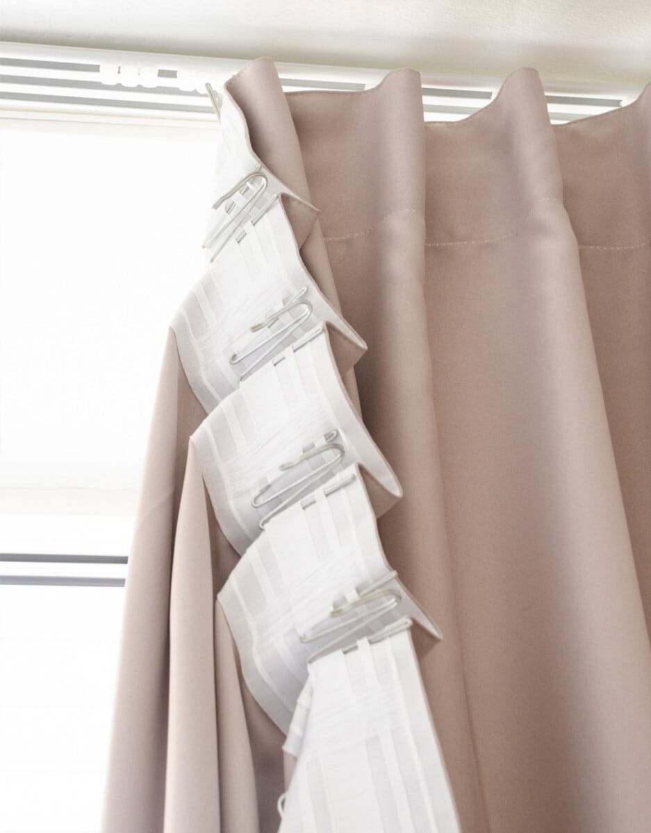 • Silmukkakoukku sopii verhojen ripustamiseen renkailla, monitoiminauhalla tai laskosnauhalla.