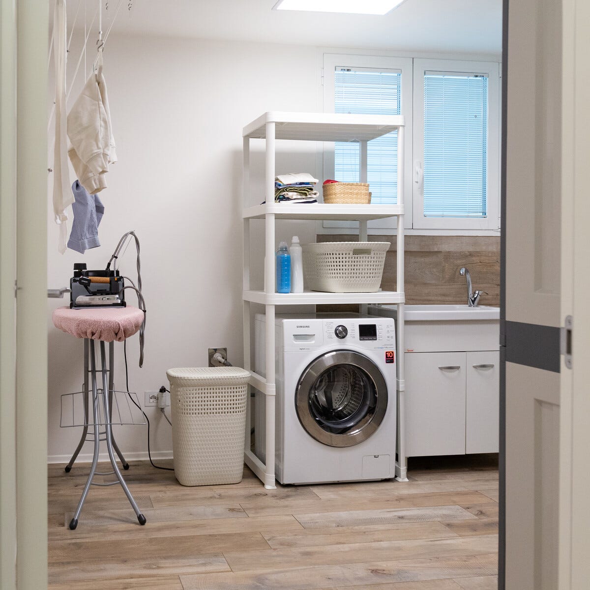 • Tukeva muovirakenne – luotettavaan säilytykseen pyykkituvassa.