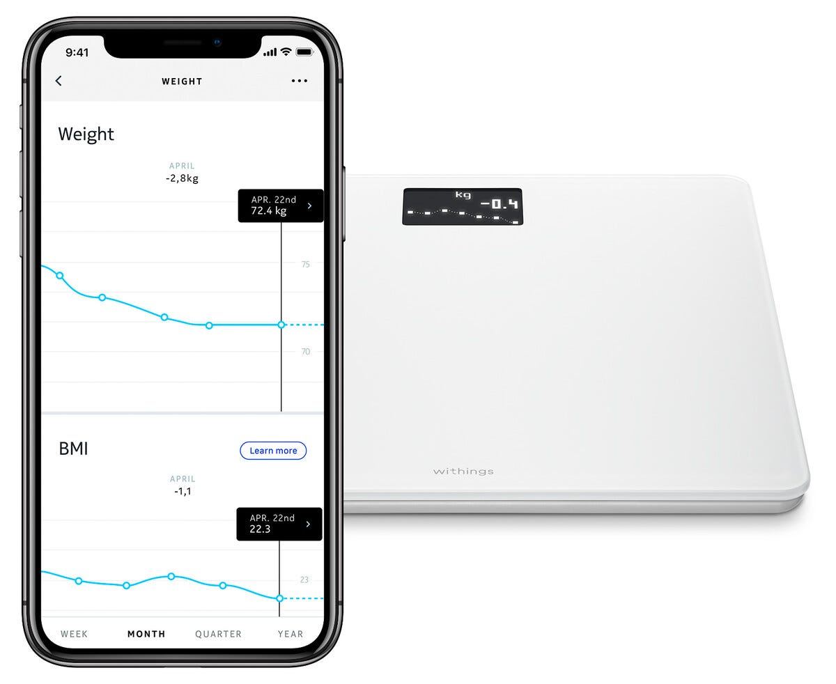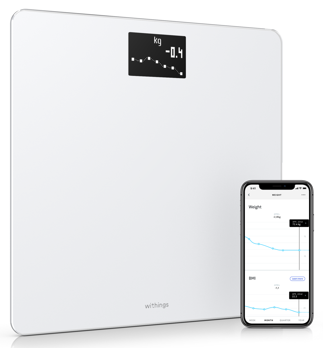 • Mittaa painon ja kertoo painoindeksin (BMI).