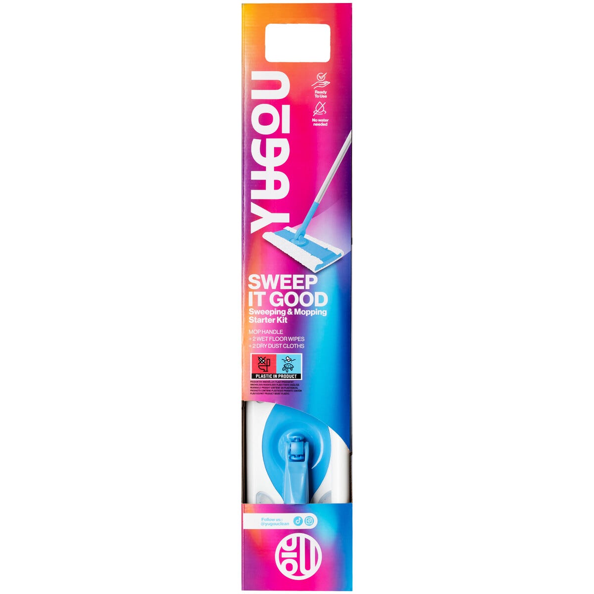 • Yugou Sweep It Good -aloituspakkaus lattioiden kuiva- ja kosteapyyhintään.