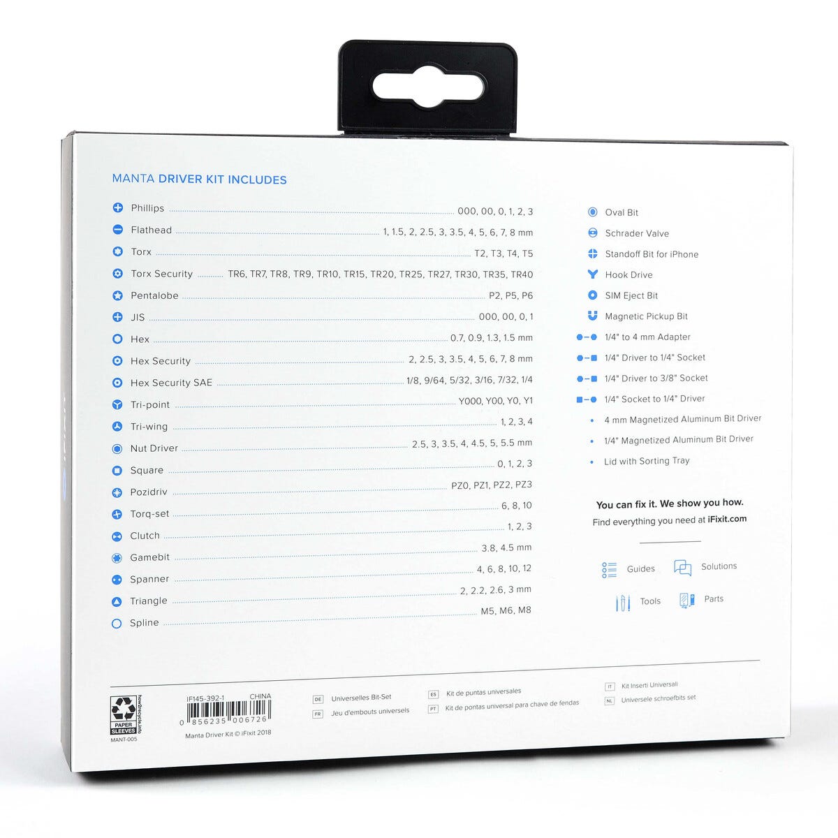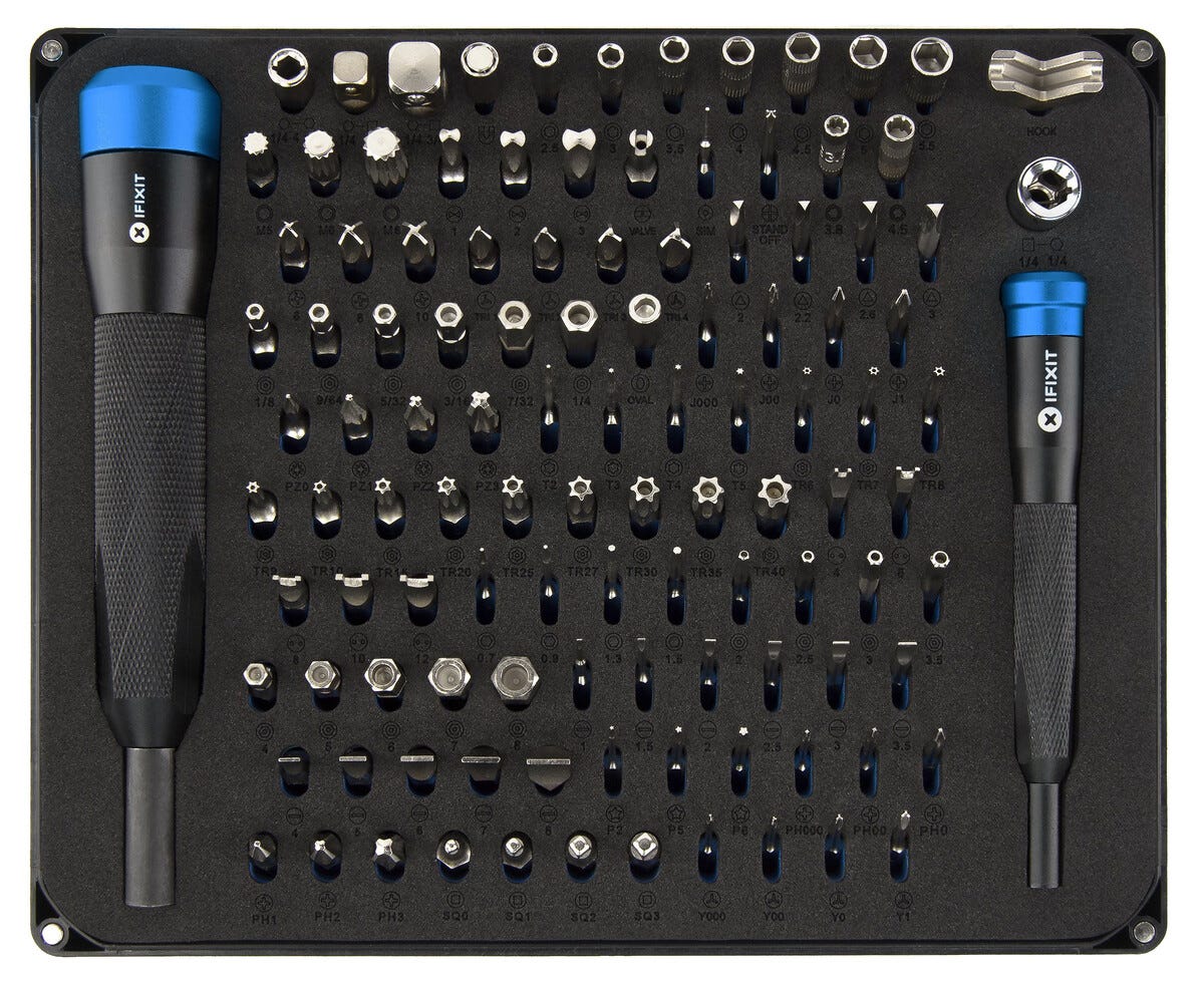 • iFixit Manta -tarkkuusruuvitaltalla ja 112 palalla voit ruuvata suurimman osan erityyppisistä ruuveista.