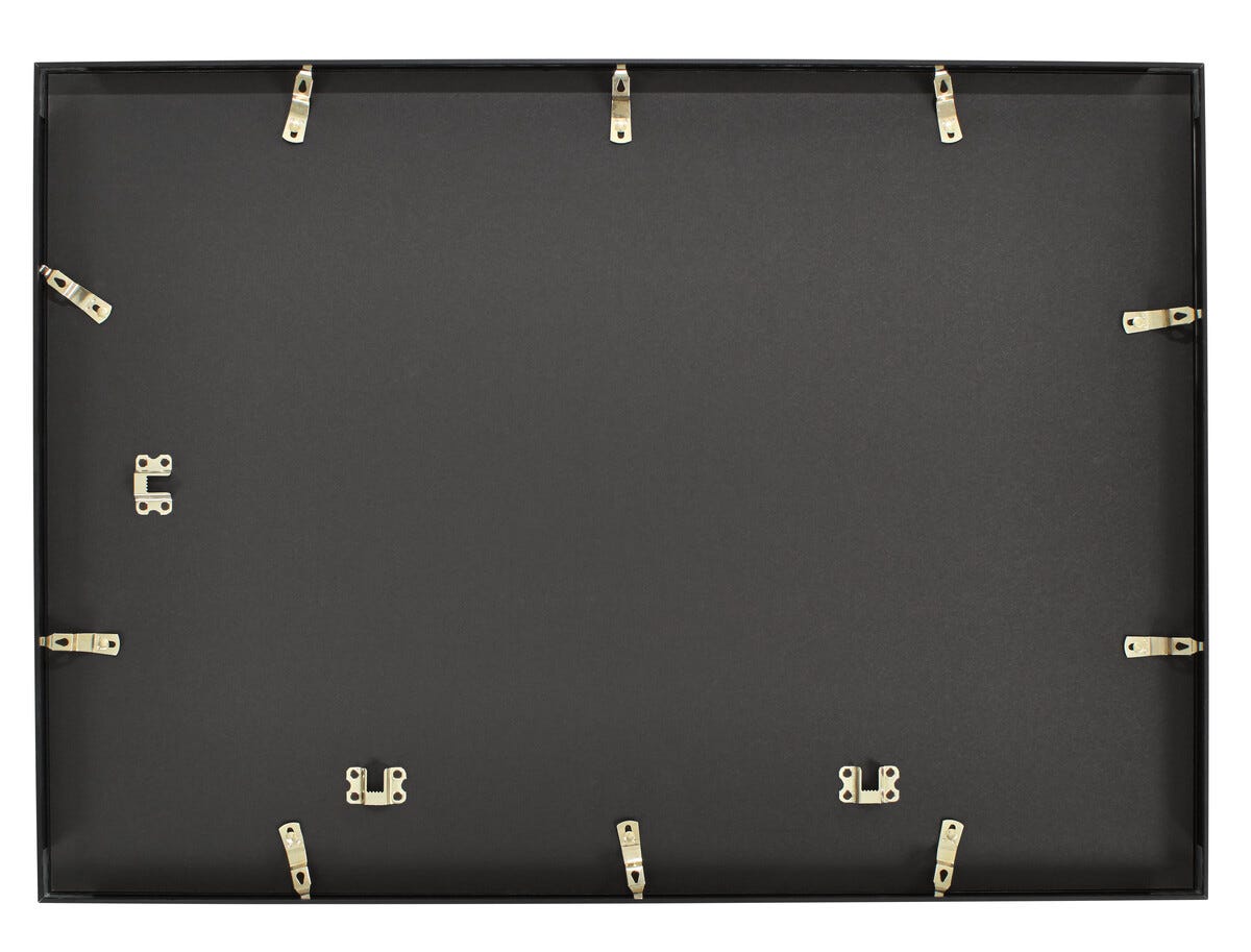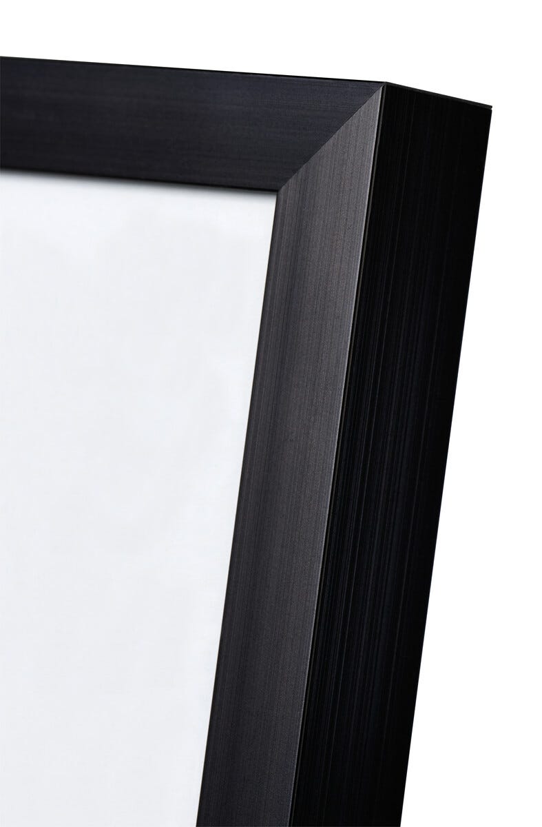 Alumiinikehys, jossa lasi (paitsi koot 50x70 ja 70x100 cm akryylilasi). Profiilimitat 6x9 - 40x50 cm = 9x14 mm sekä 50x70 - 70x100 cm = 9x21 mm.