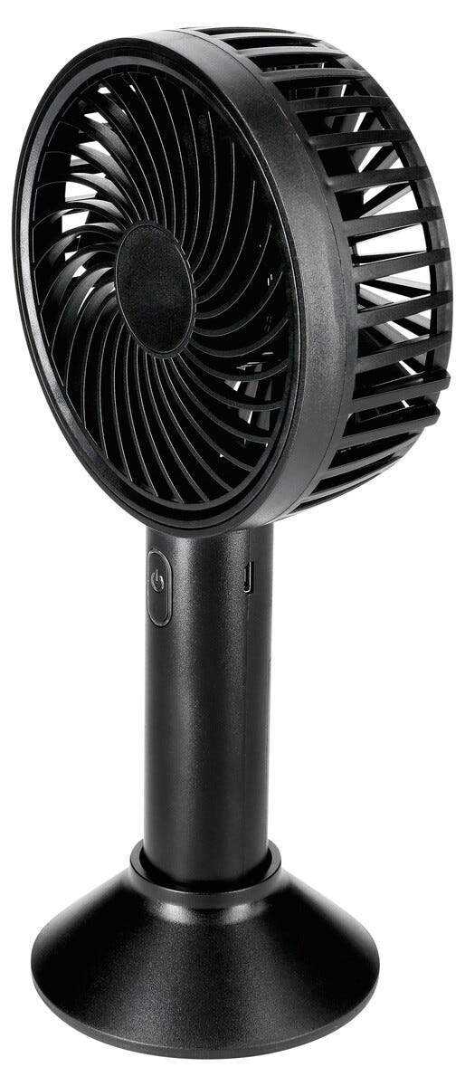 • Laddbar minifläkt med bordsstativ och USB.