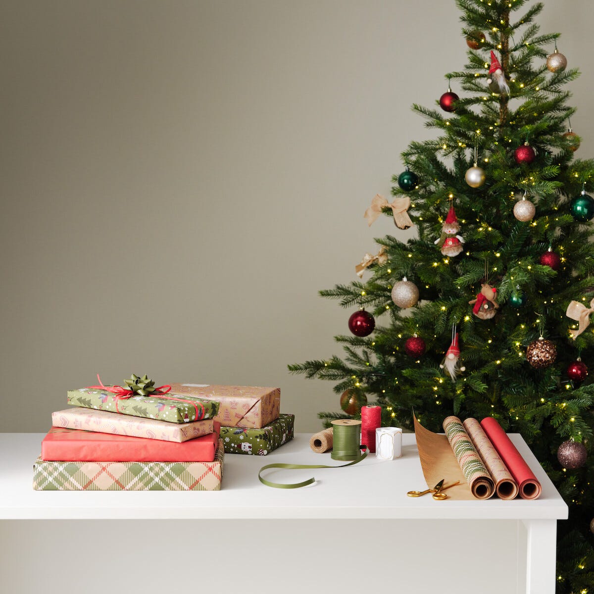 • 4 metriä lahjapaperia – hillityt värit ja luonnonvärinen pohjasävy.