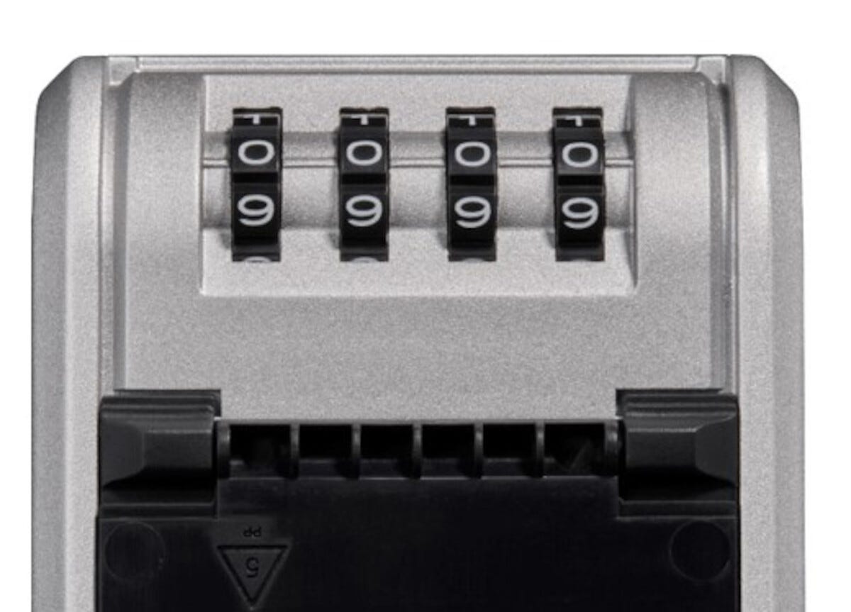 • Stor, veggmontert nøkkelboks med 4-sifret kode.