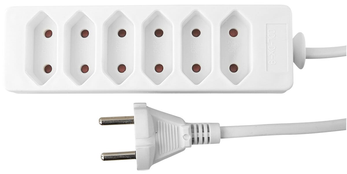 6-veis grenuttak Euro med 1,4 m kabel