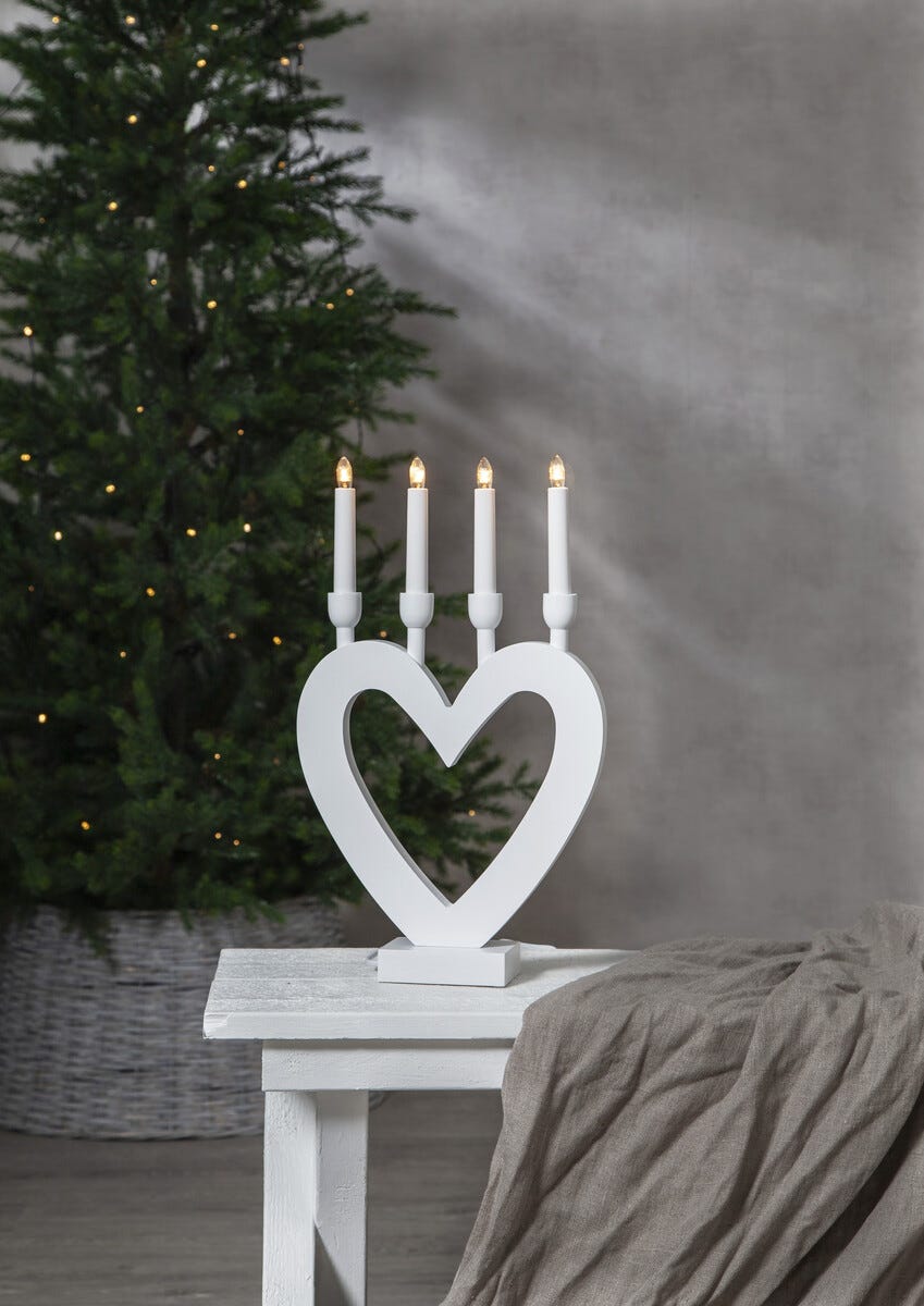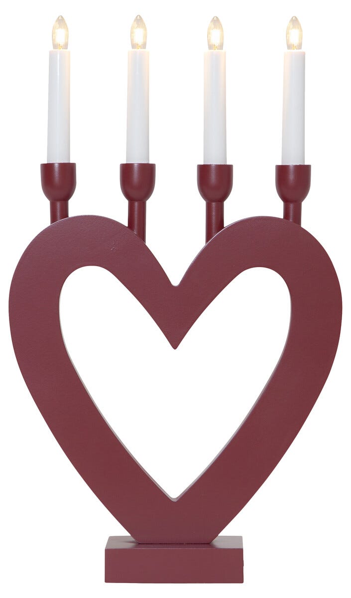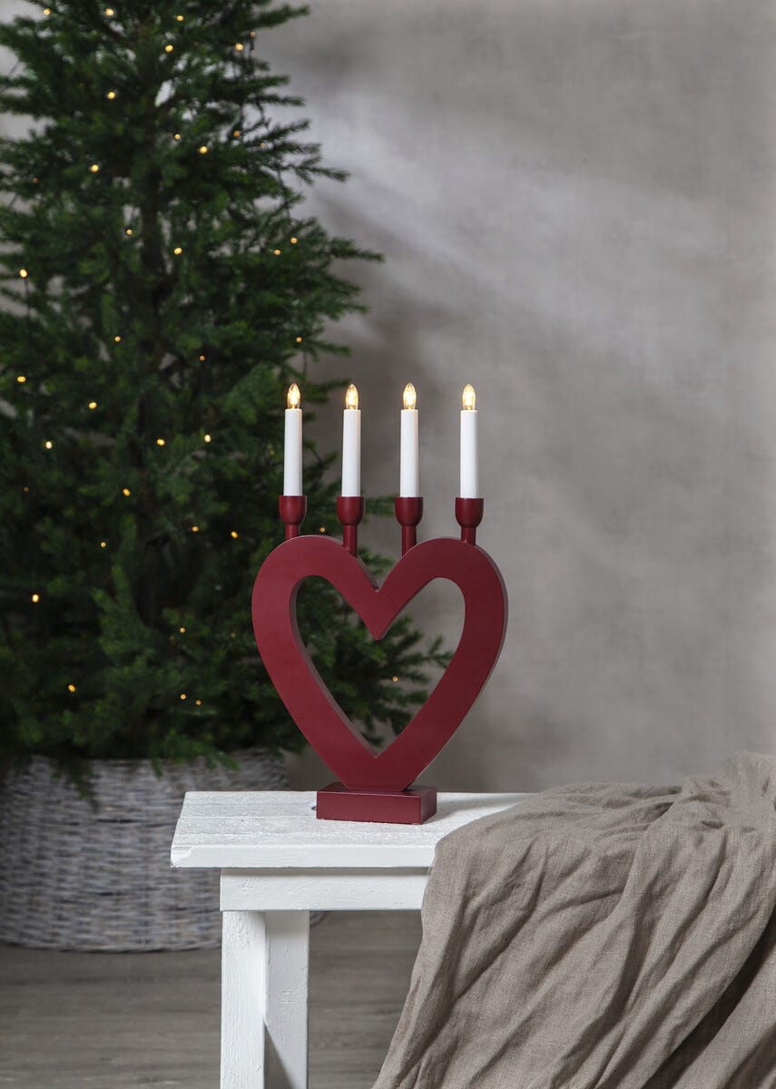 • Adventsstaken Dala – hjerte i tre med 4 lyspærer (leveres med pærer).