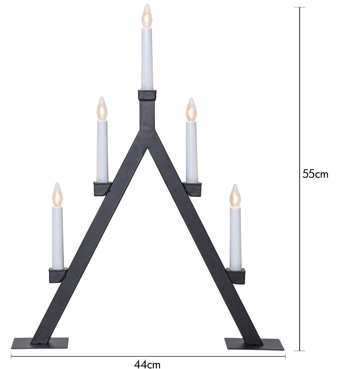 Adventsstake Oliver 5-armet LED svart metall, 55 cm