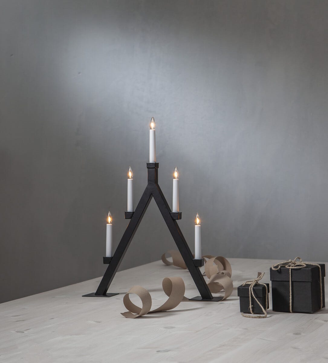 • Adventsstake Oliver – 5-armet elektrisk lysestake med varmt filamentlys.