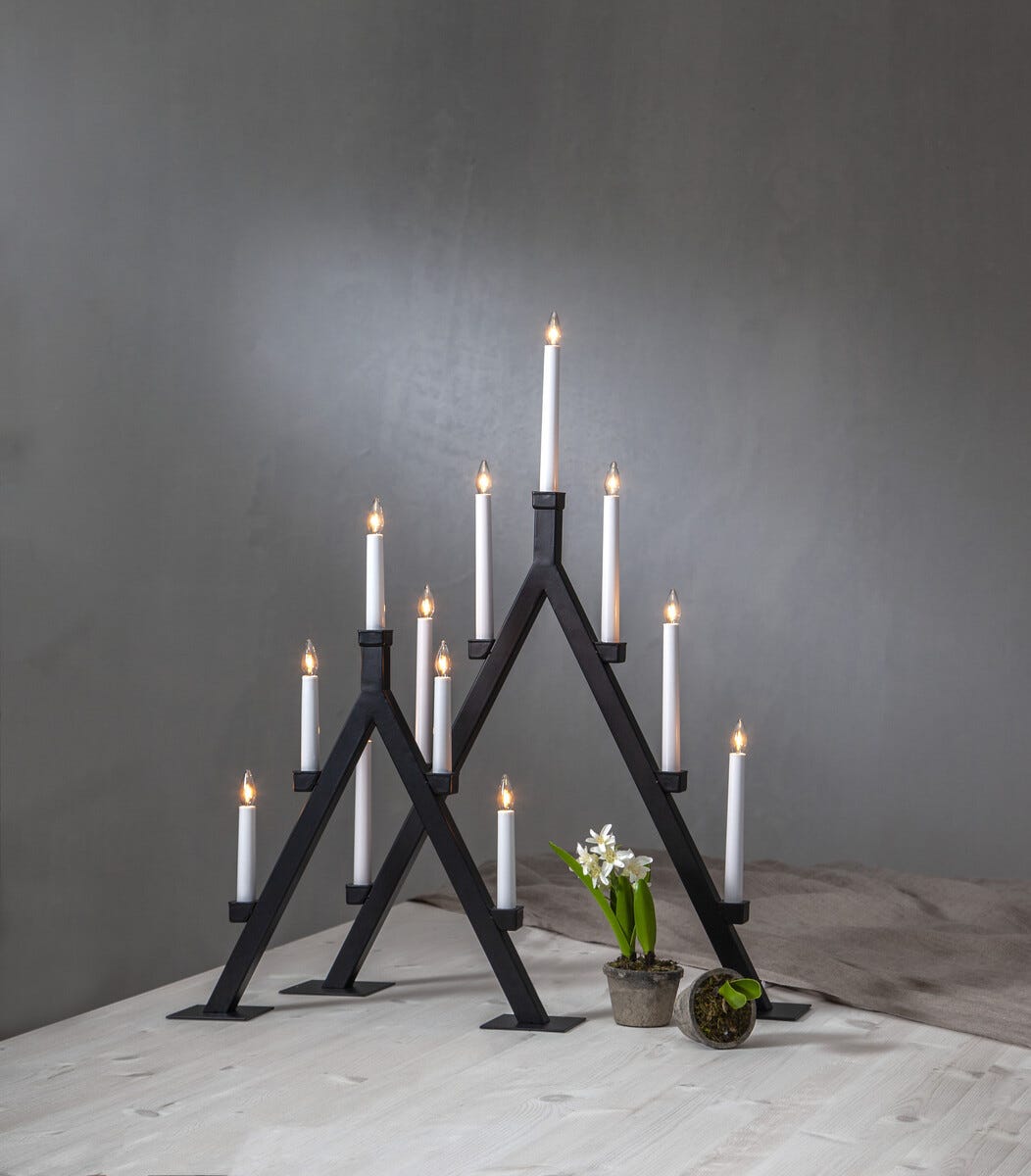 • Elegant og energibesparende adventsstake i svart metall.