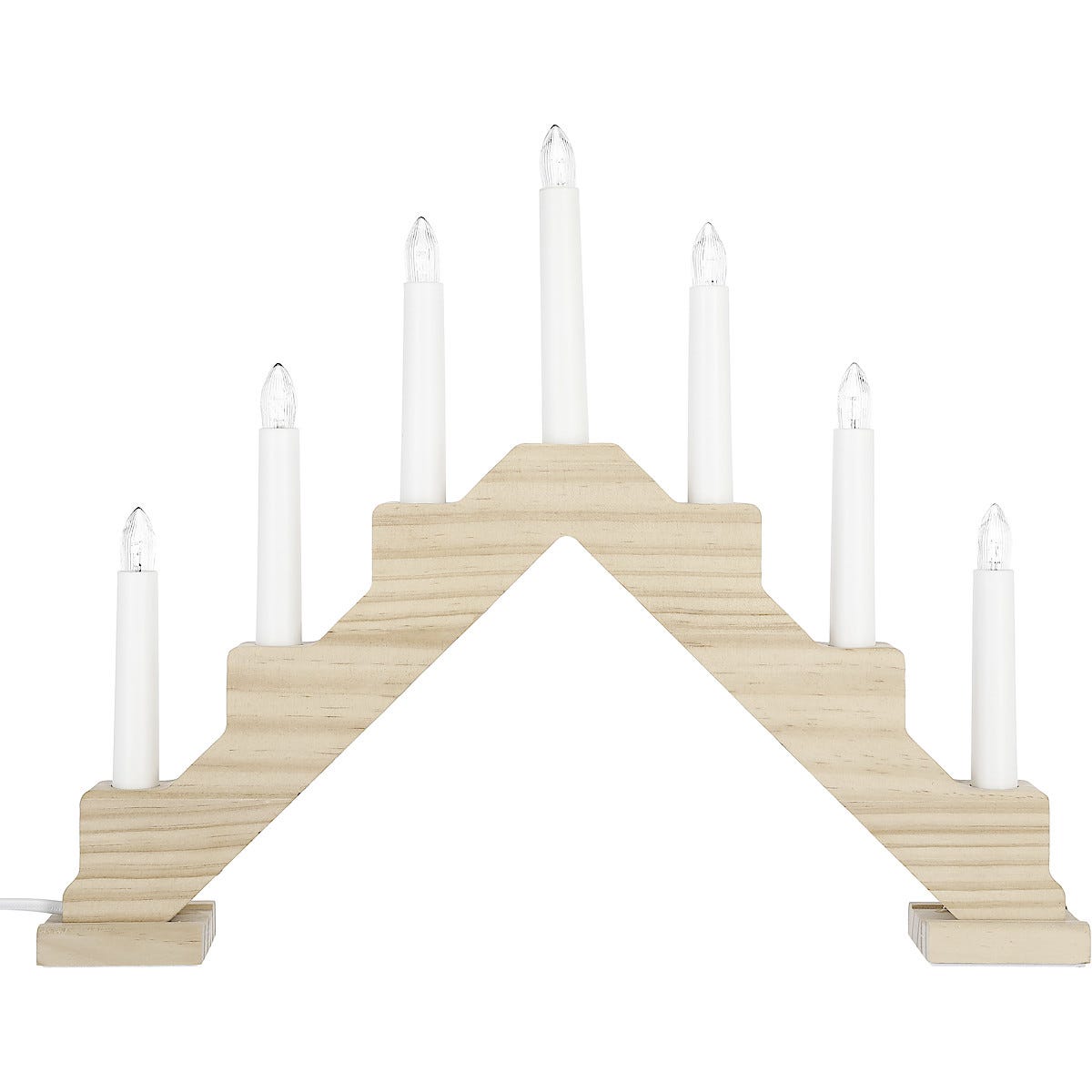• Klassisk lysestake i tre med 7 glødepærer og ledning. Høyde 31 cm. Bredde 38 cm.