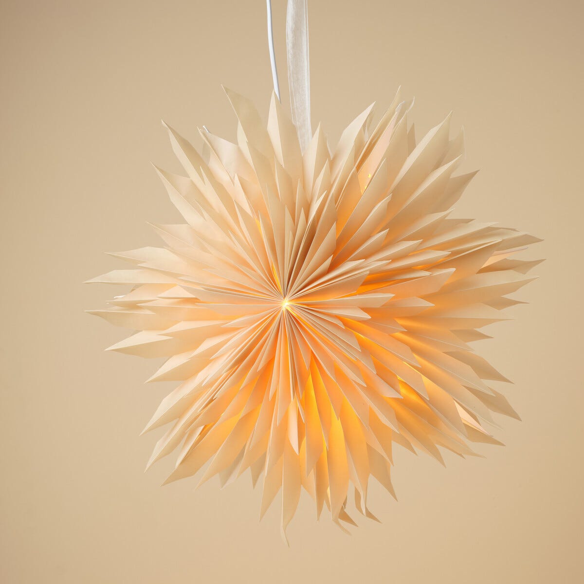 • Vakker, foldet papirstjerne med uregelmessige armer som gir et mykt lys.