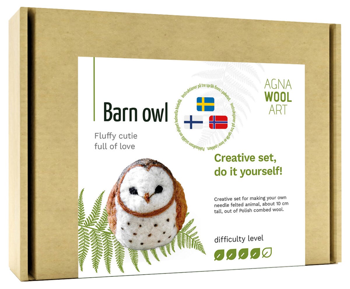 • Agna Wool Art Kit ugle – komplett sett for å filte med ull og nåler.