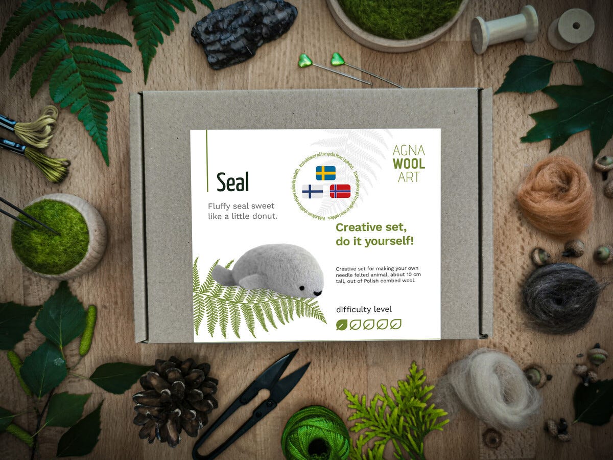 Agna Wool Art Kit ullfilting, sel, 10 cm