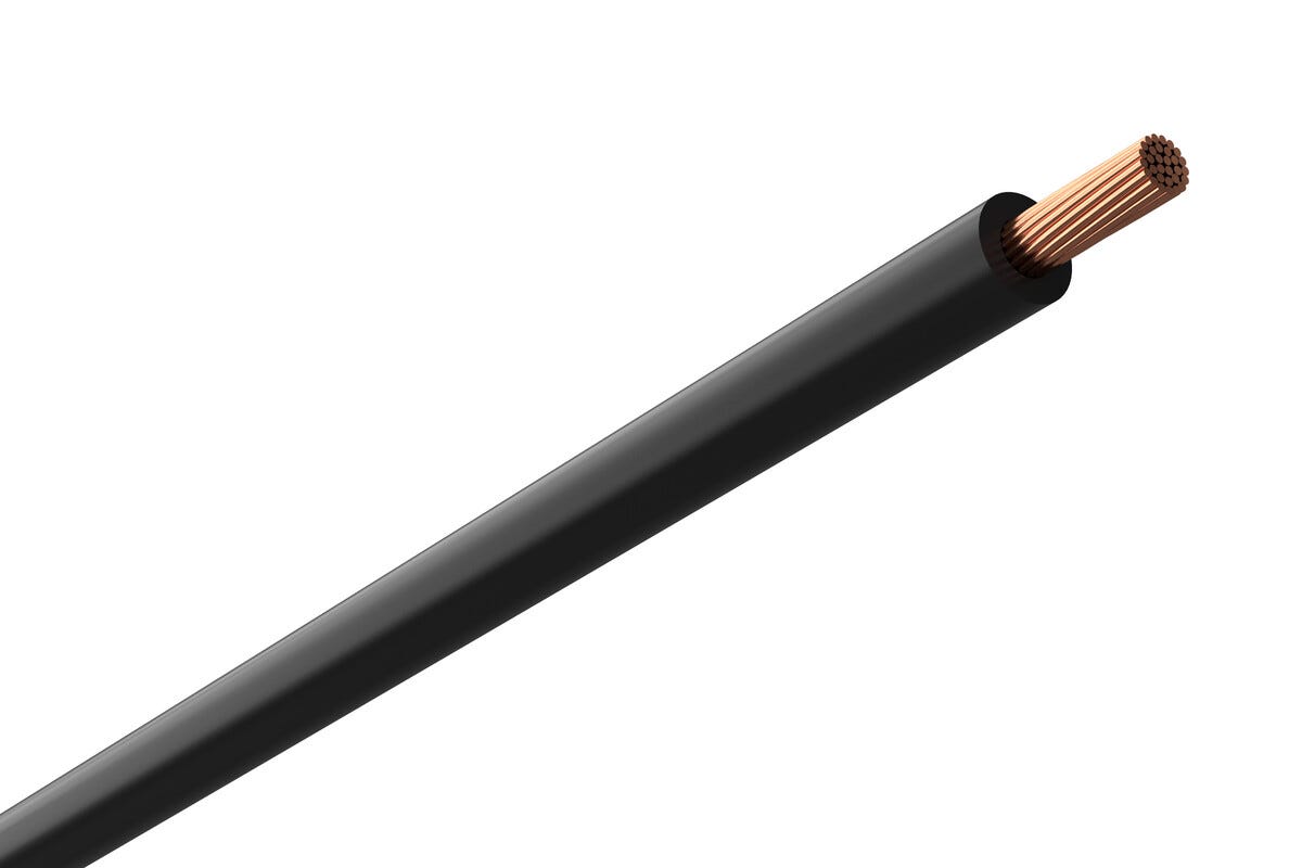 • Svart, HFFR-isolert koblingskabel med flertrådet kobberledning.