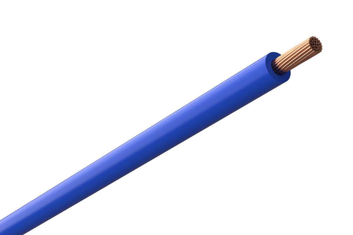 Blå, HFFR-isolert koblingskabel med flertrådet kobberledning.
