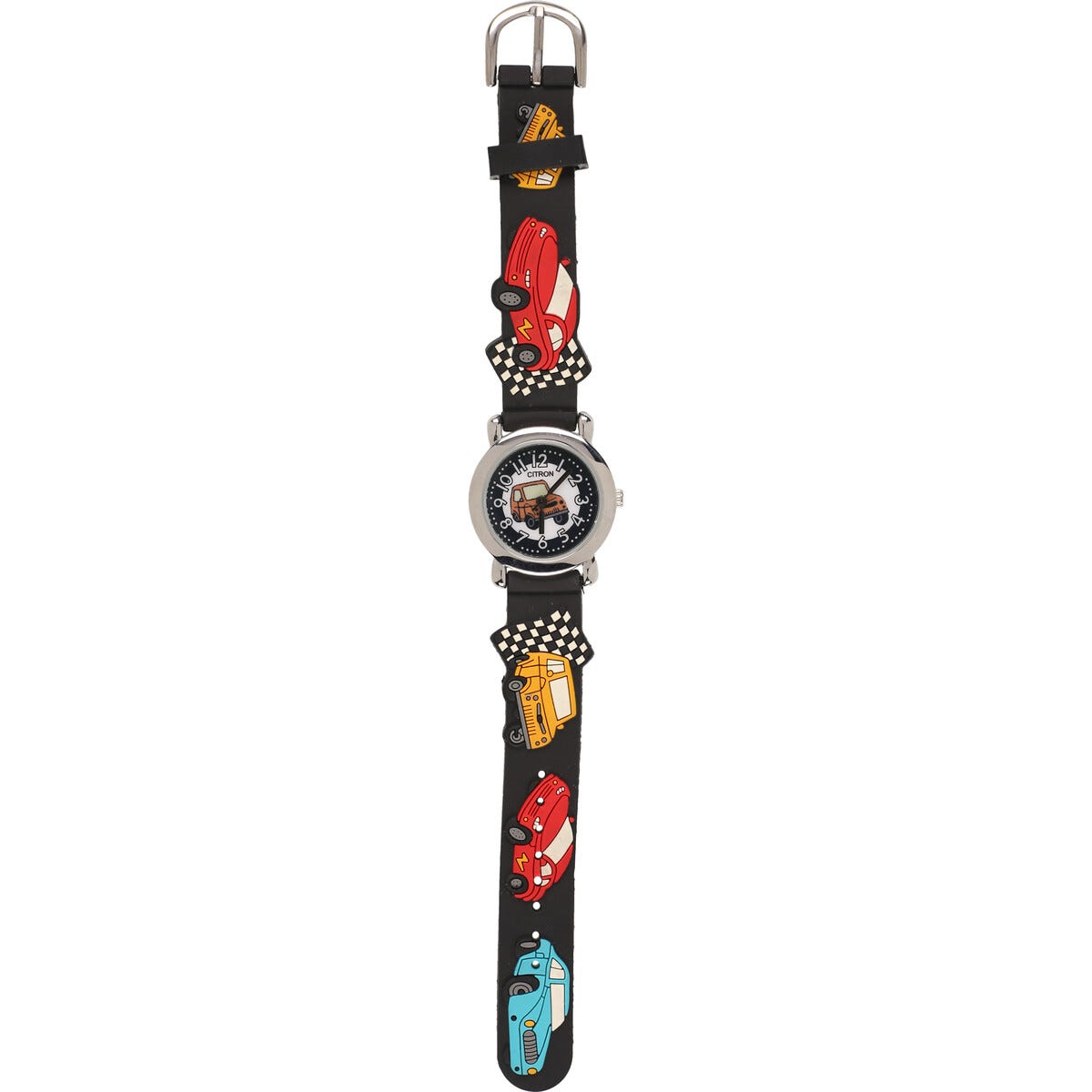 Analog barneklokke racerbiler, svart armbånd