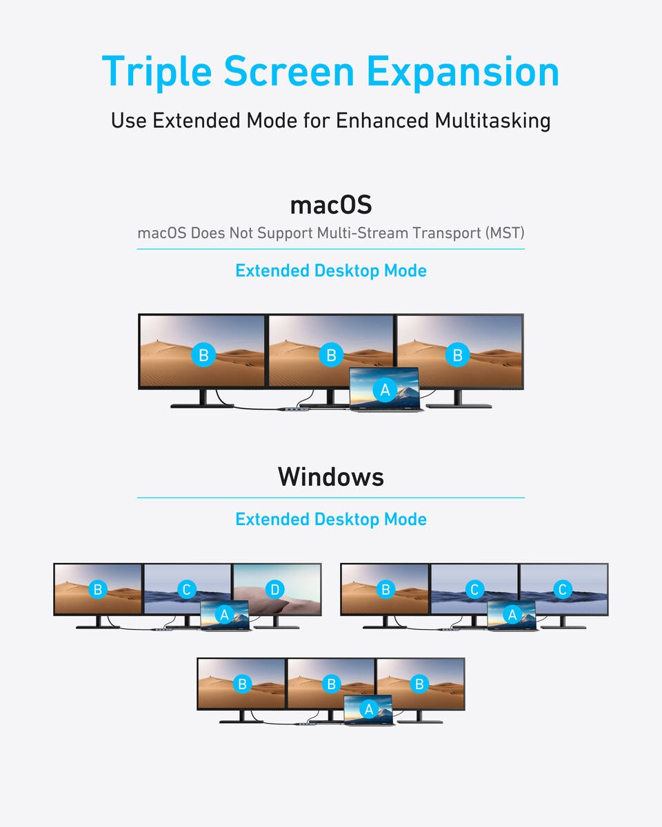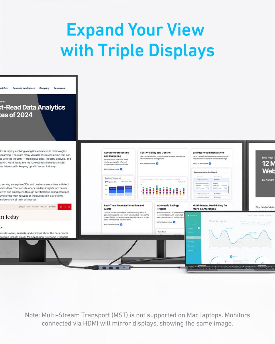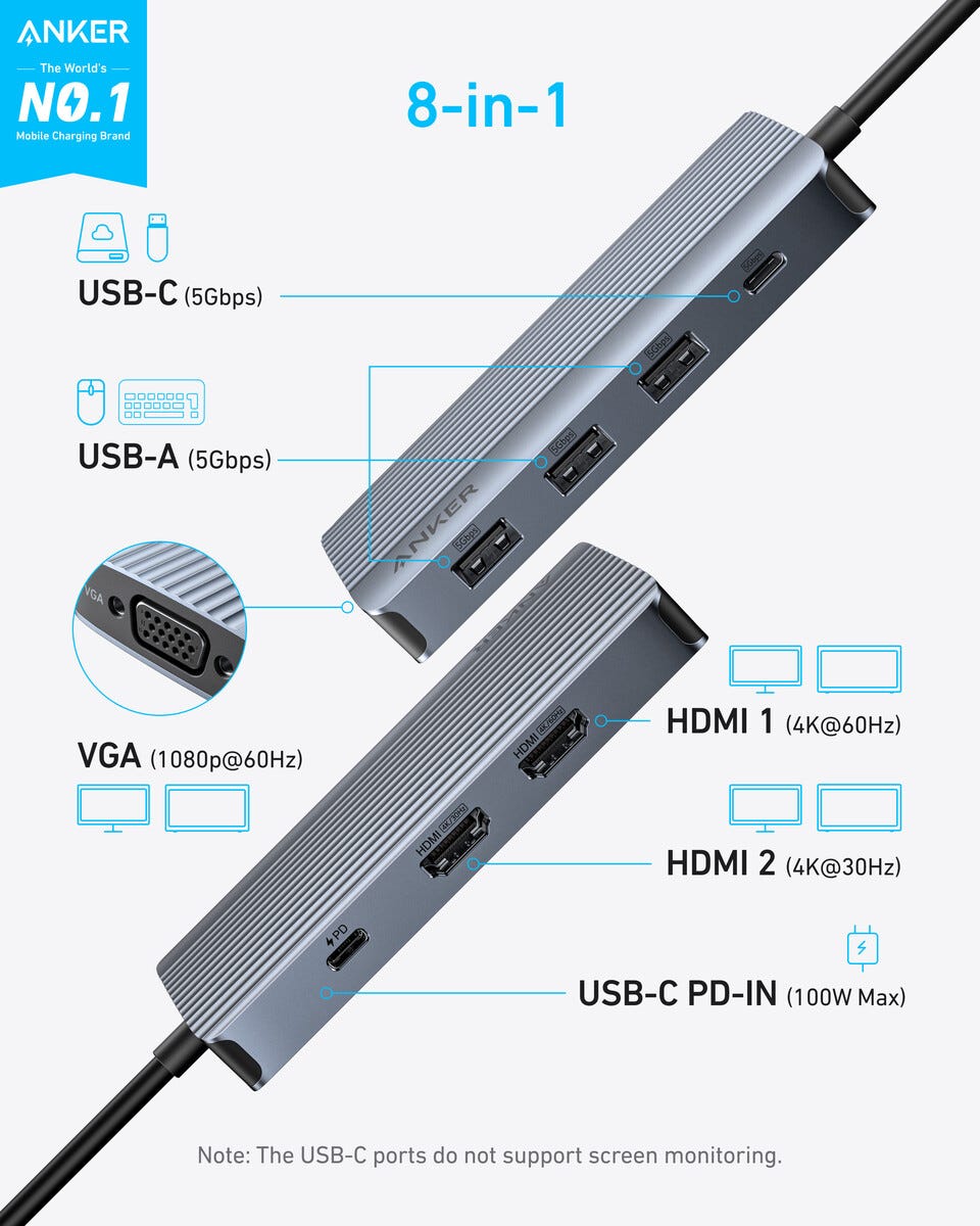Anker A8379 USB-C-hub 8-i-1 med støtte for tre skjermer